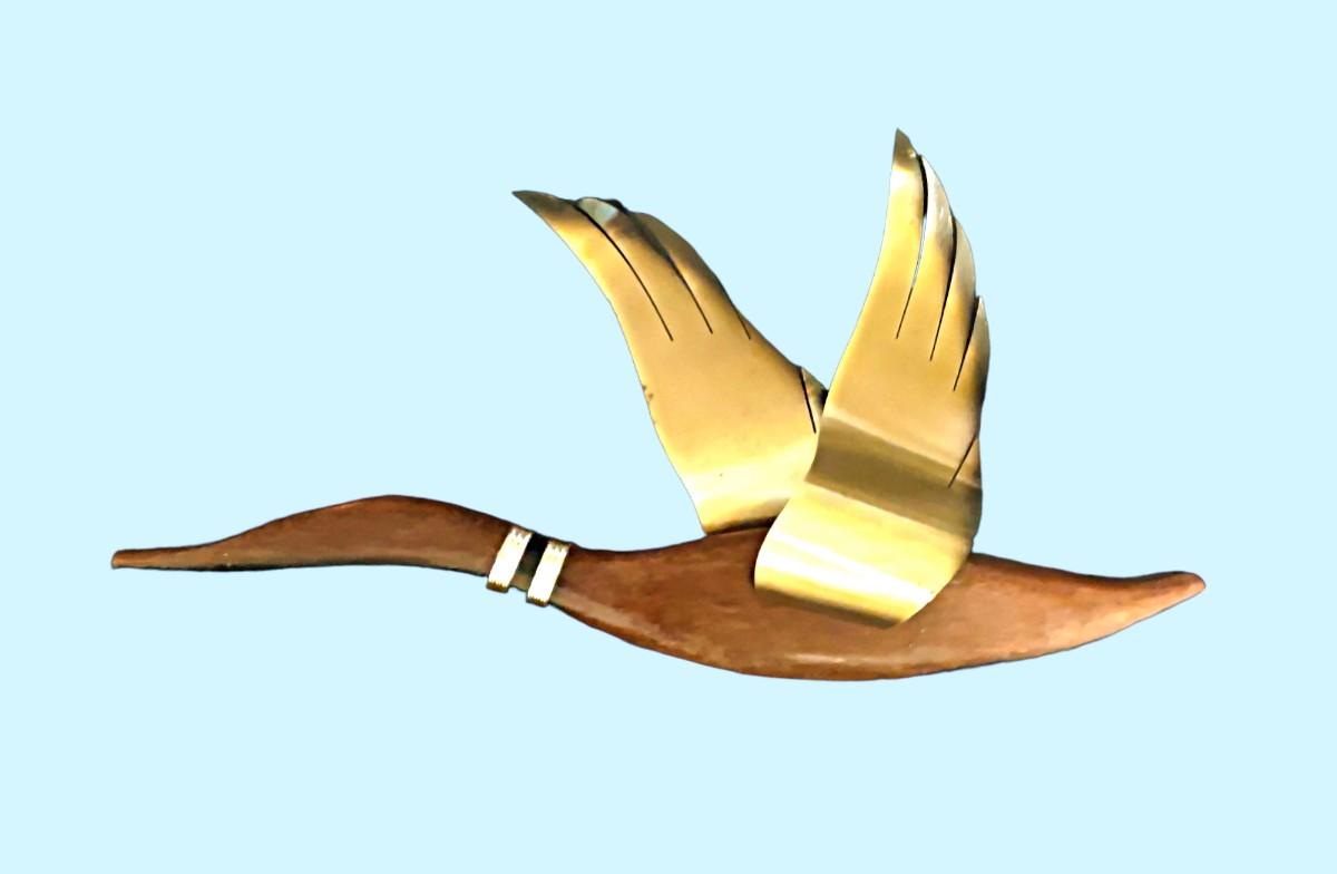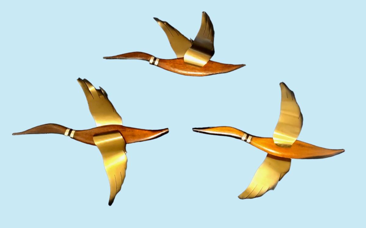 Masketeer's 3 Teak & Brass Geese circa 1960's Wall Decor,