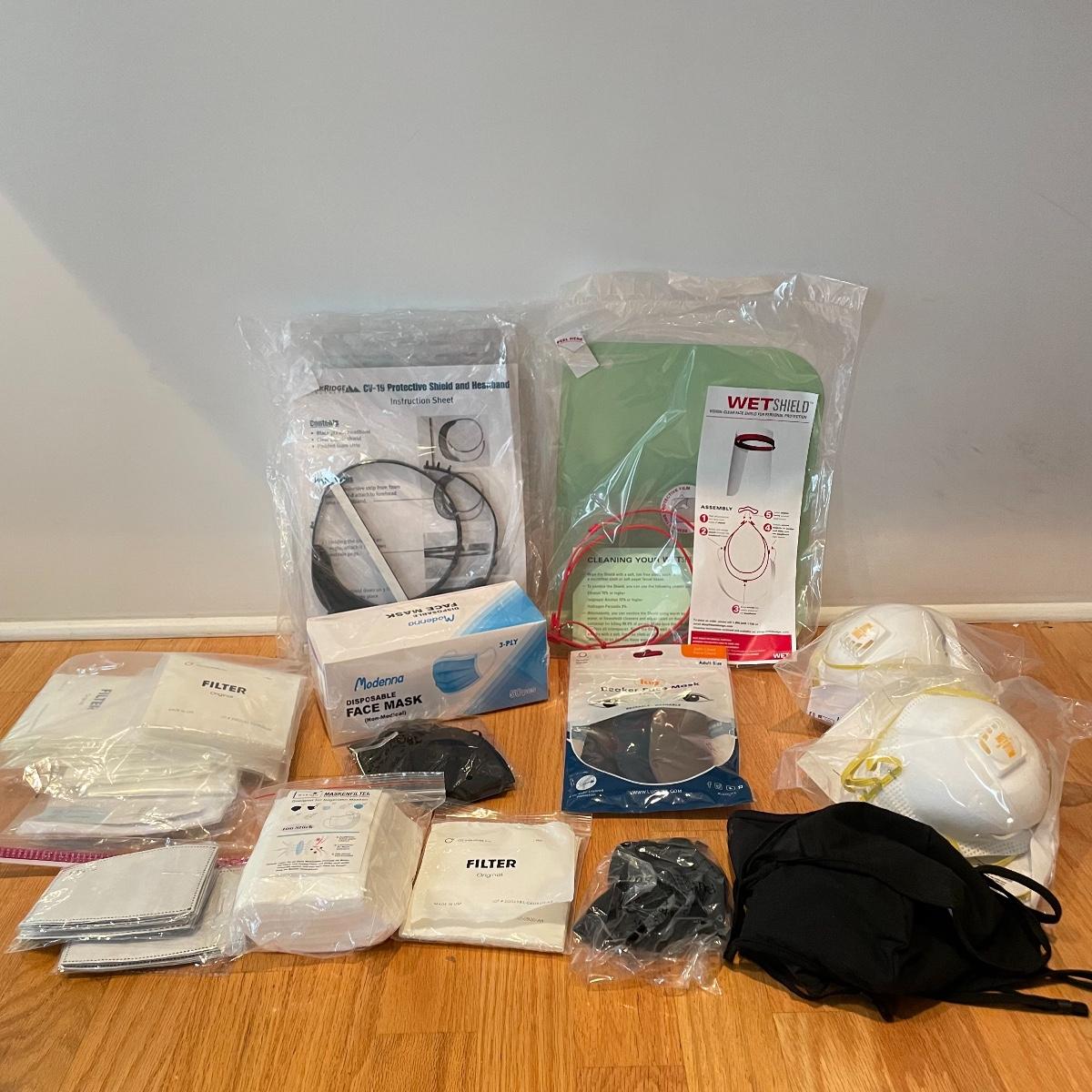 Huge selection of face masks and filters. Two 4pk 3M Magellan’s N95. Four clear protective face shields. An unopened 3pk cloth mask set plus eight more used cloth masks and a mesh laundry bag. A 50pk Modenna disposable non-medical face masks and over 140 various filters. Local pick up only.