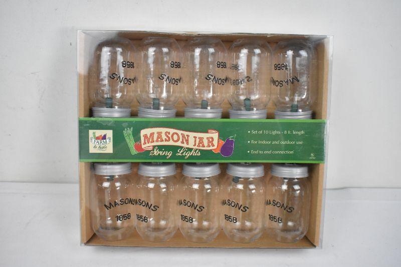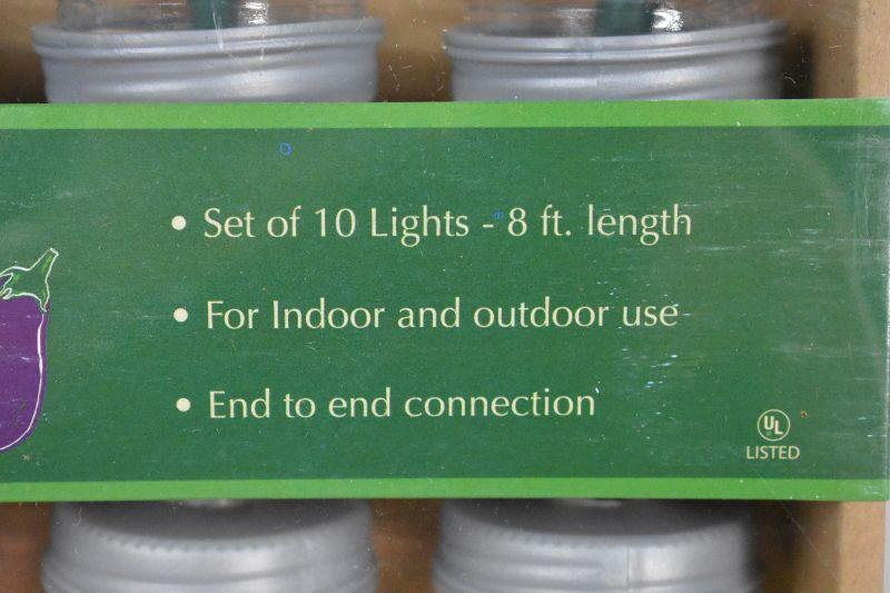 Mason Jar String Lights, 8 Feet, Set of 10 lights - New