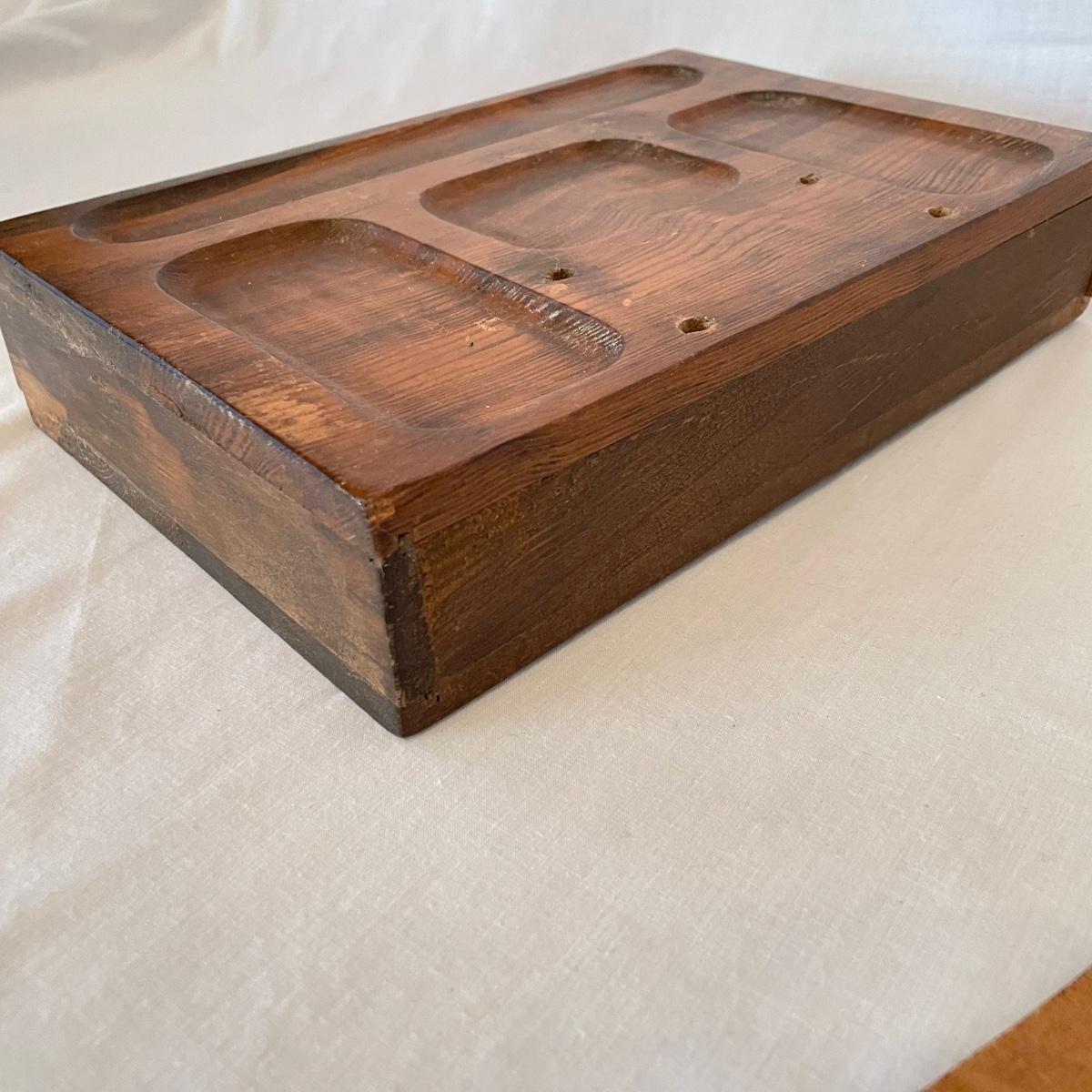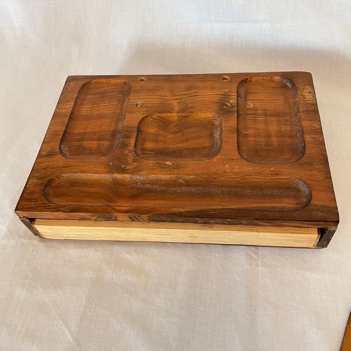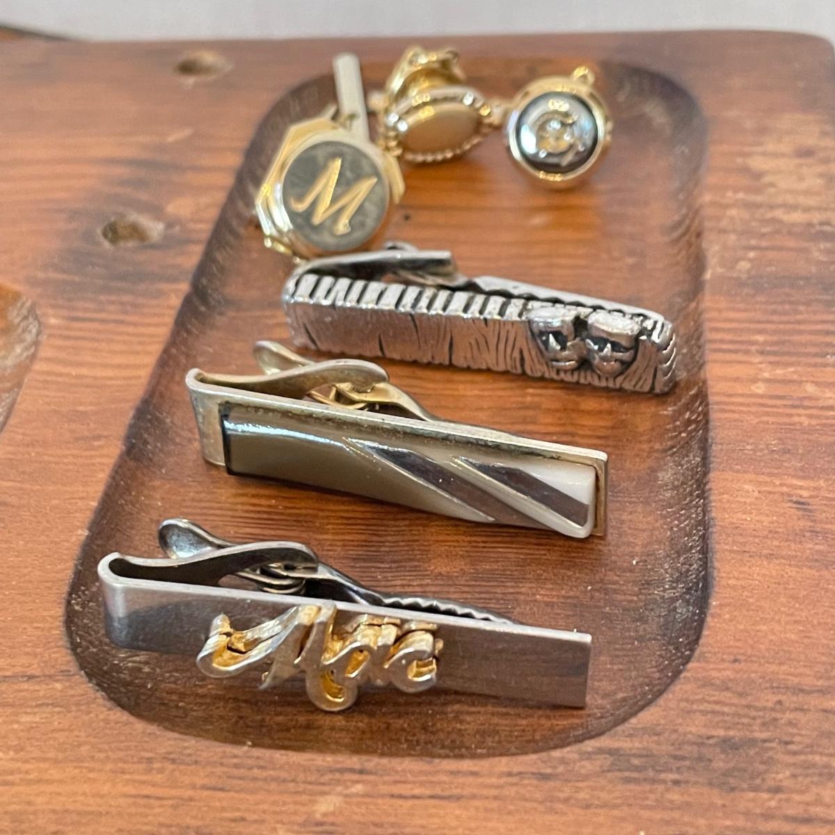 A primitive style men’s valet box with what appears to be a homemade drawer. Lot includes three Masonic pins, a lighter that looks like a gold pen (flint sparked when tested), a money clip with date engraved, three tie tacks, three tie clips and a leather belt with a brass buckle. Belt is labeled 36. “Mac” on one tie clip is loose, a little bit of glue would easily fix it. See images. Shipping available. All sales are final. No returns or refunds. Please bid accordingly.