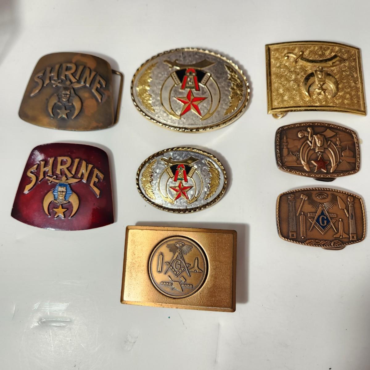 Mason Shriner Boumi Temple Belt Buckles Harry Klitzner, Indiana Metal Craft,