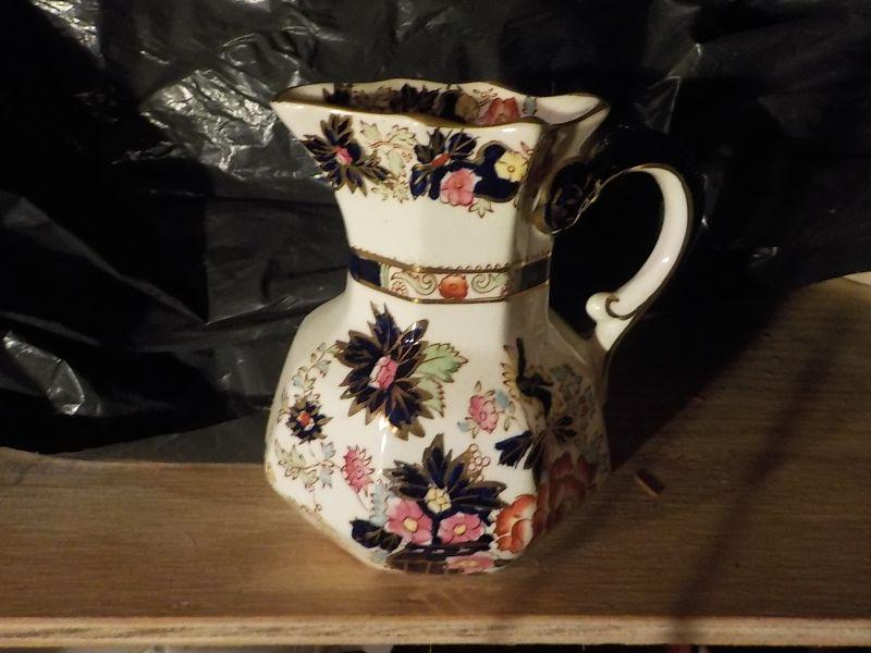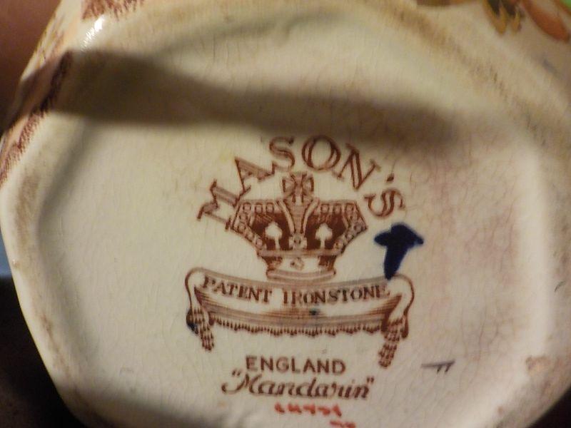 mason pitcher, "Mandarin" and numbered. No repairs or chips.