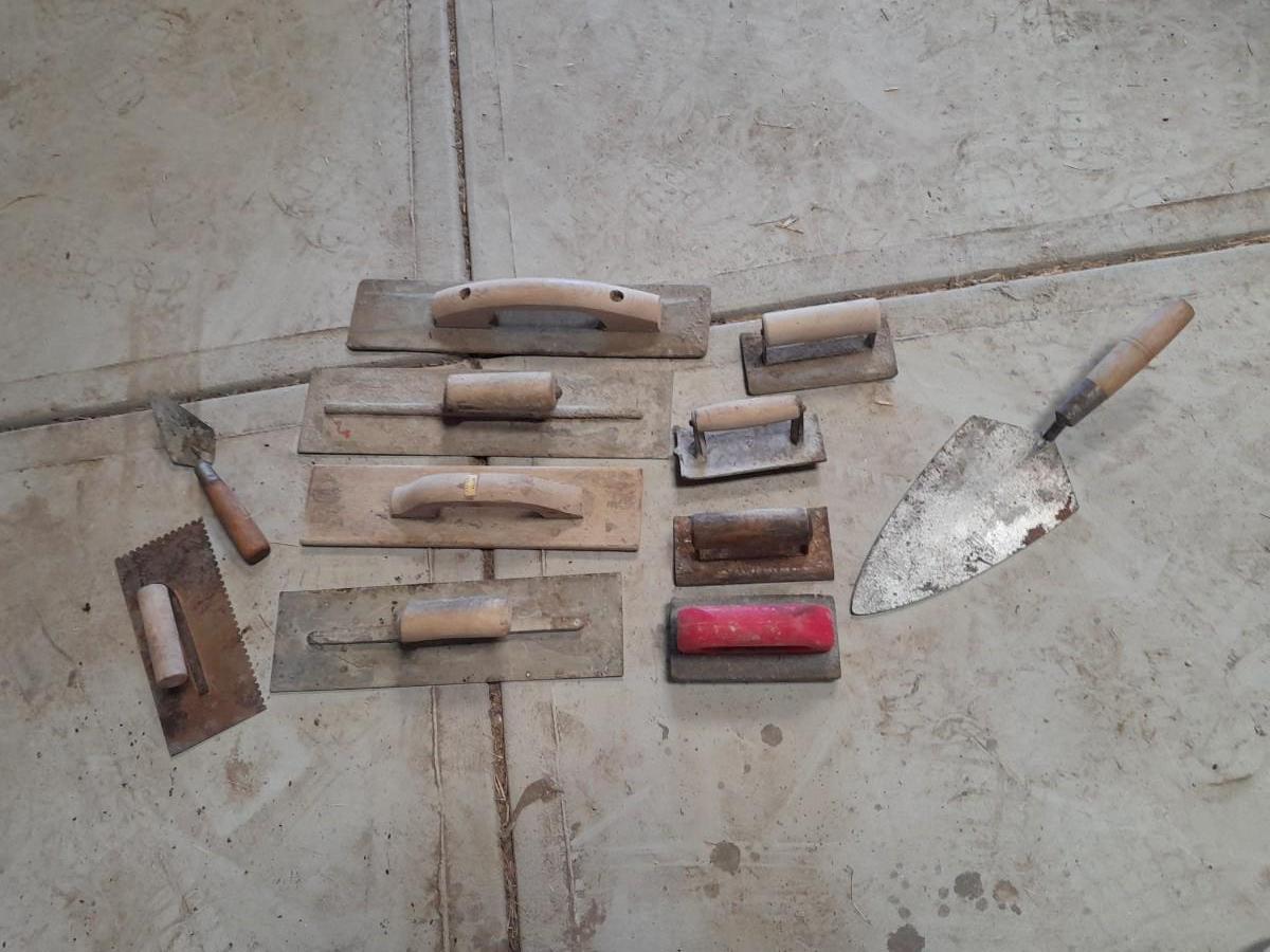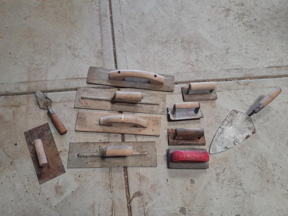 NACE VARIETY OF LIGHTLY USED MASONARY TOOLS / TROWELS