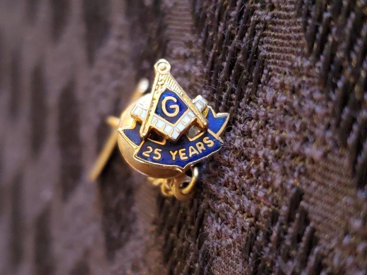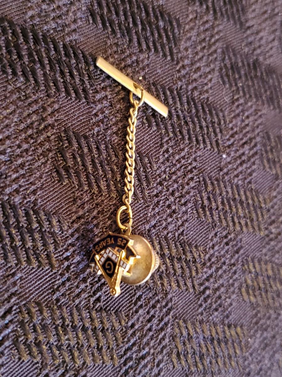 Vintage 10k Yellow Gold Masonic 25 Year Ribbon Tie Tac