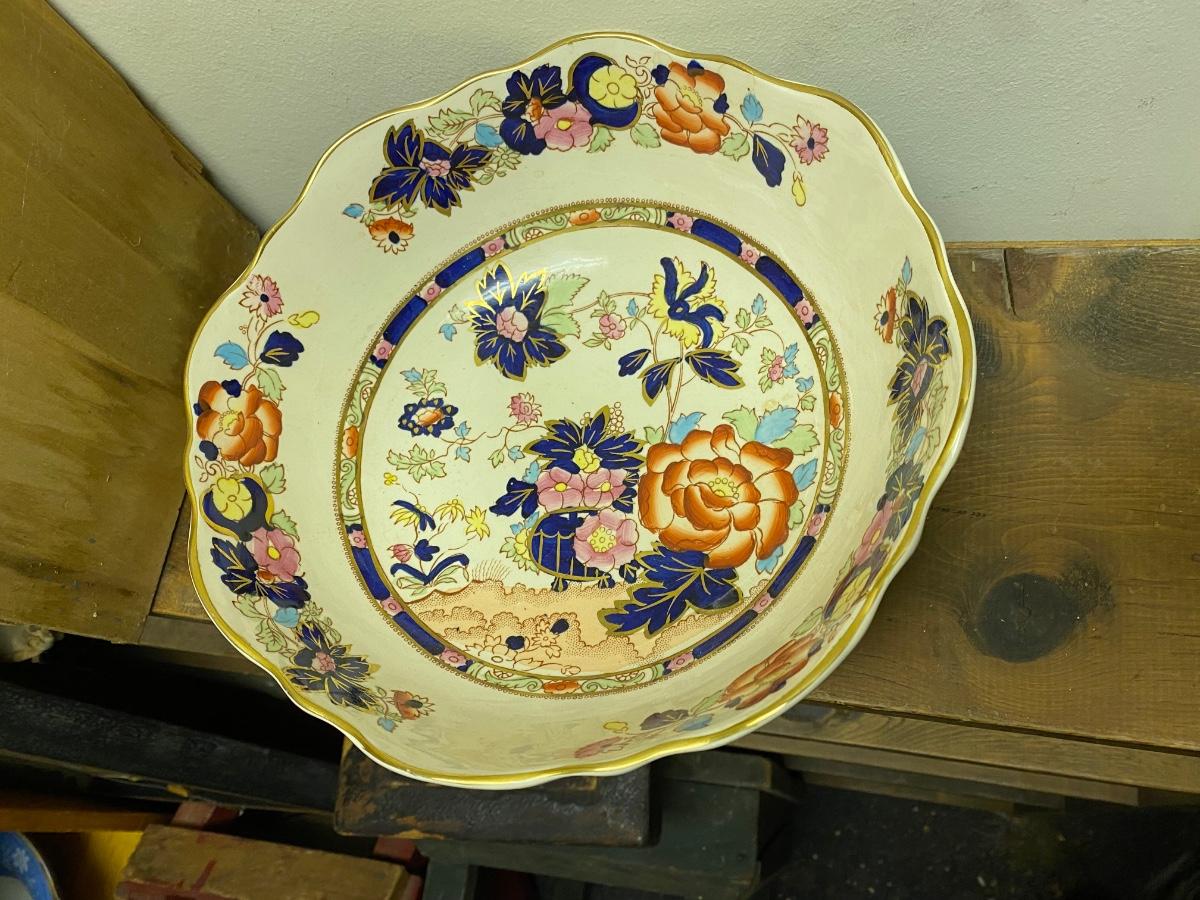 Mason's Mandarin ironstone charger, large round platter, cobalt blue and gold with floral patterns, excellent condition.