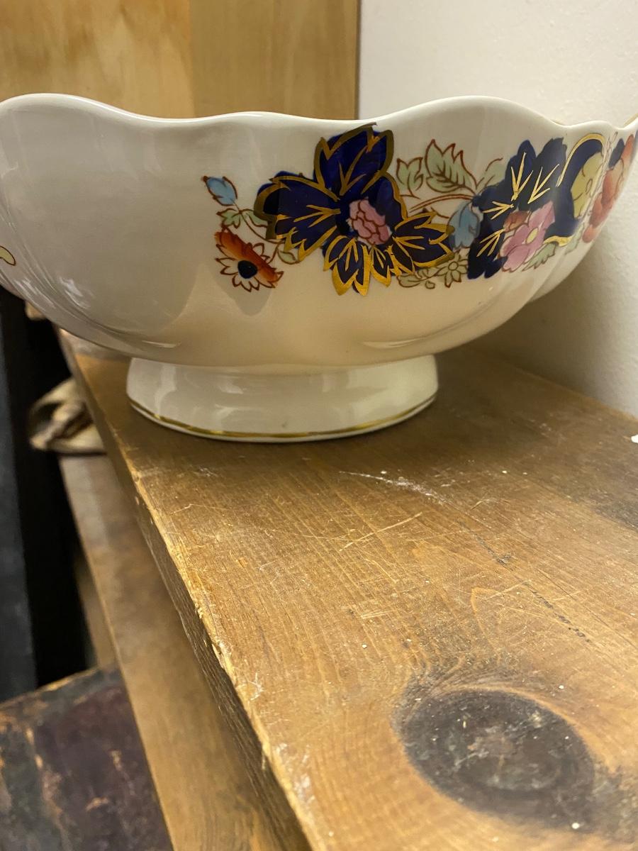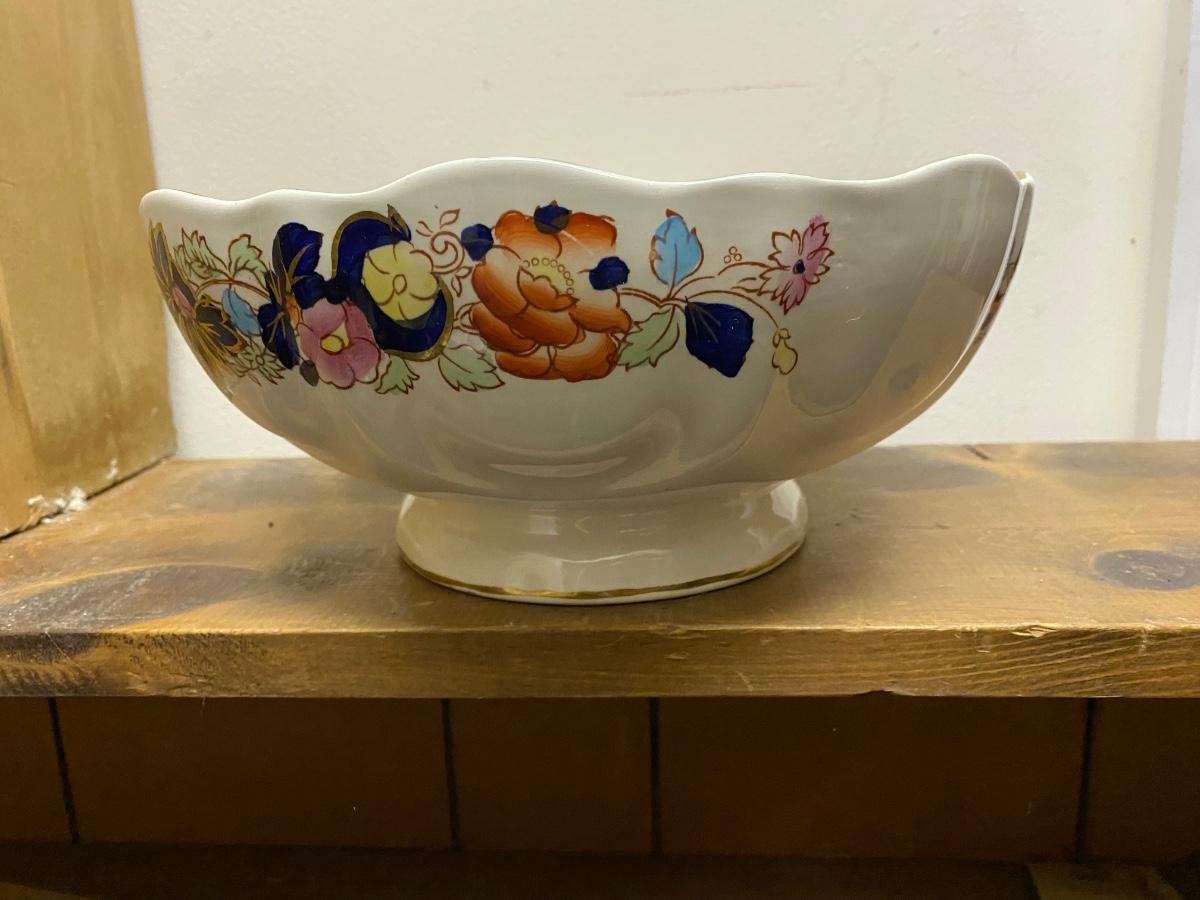 Mason's Mandarin ironstone charger, large round platter, cobalt blue and gold with floral patterns, excellent condition.