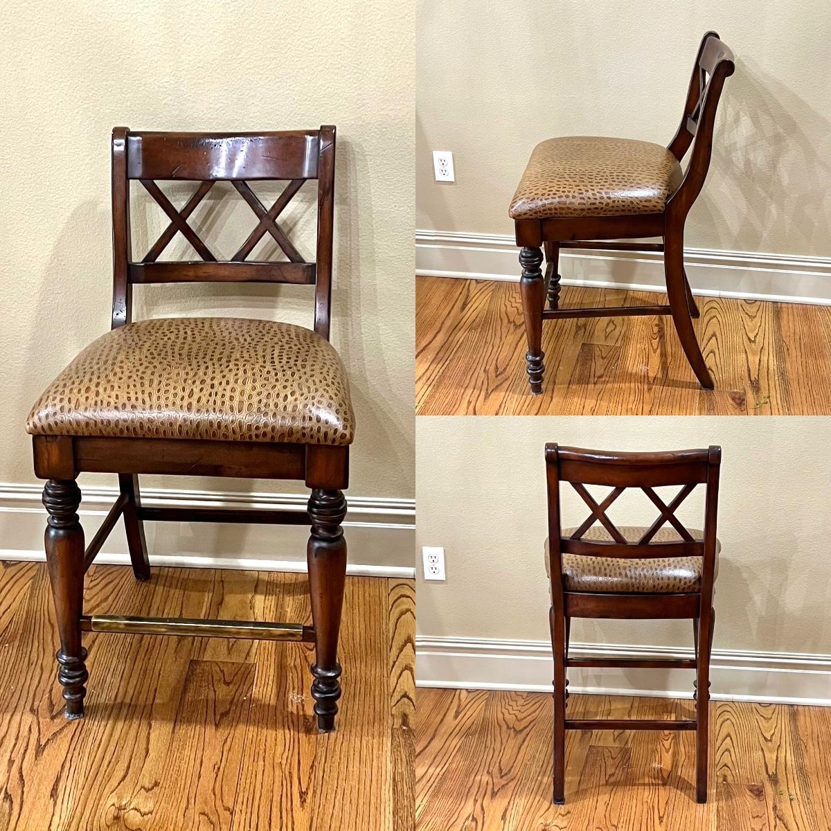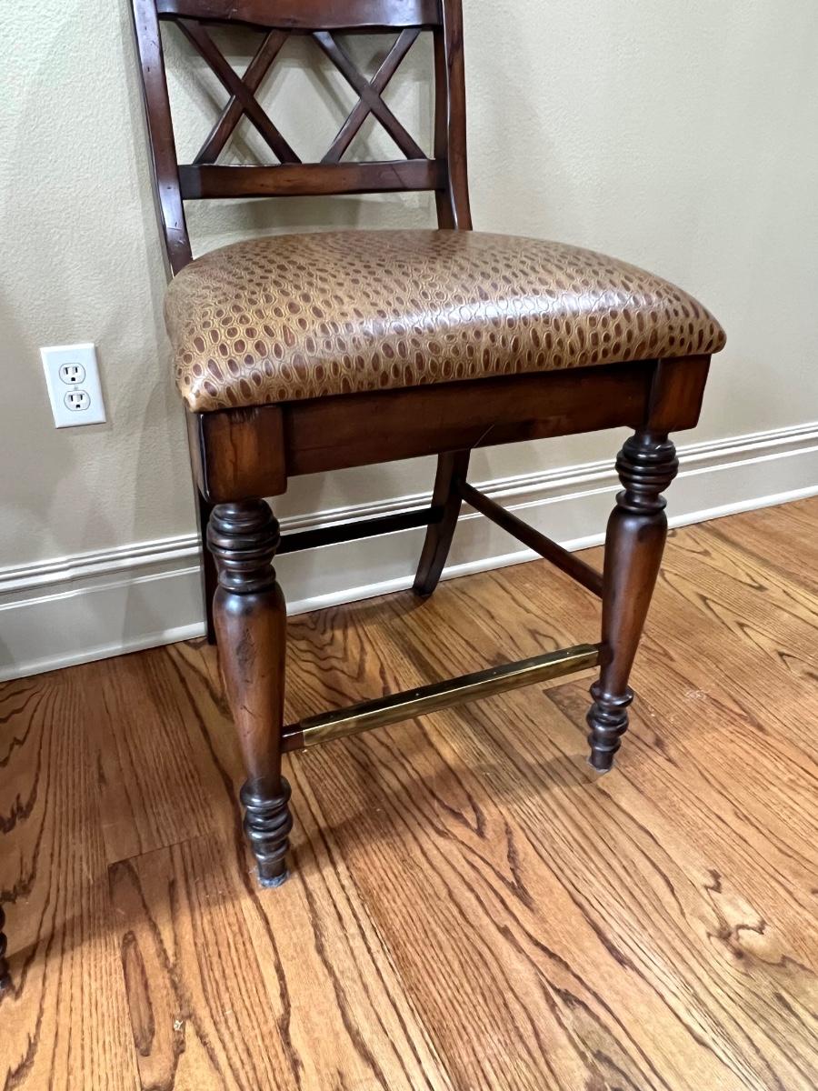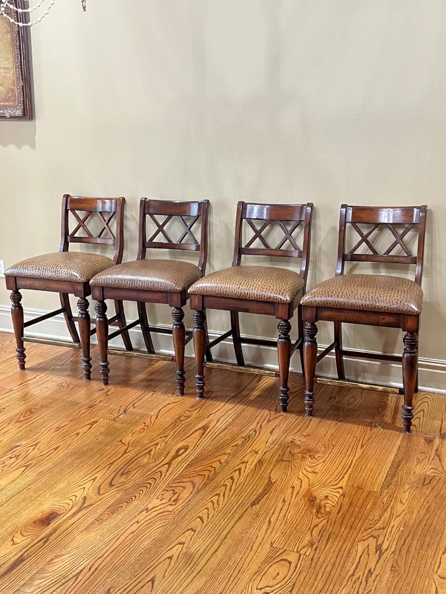 MASOTTI ~ Four (4) Solid Wood Leather Bar Stools
