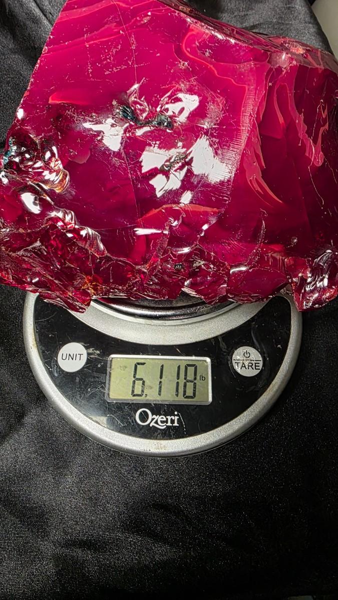 Massive 6.2lb Ruby Red Slag Glass Display Specimen with Blue Inclusions