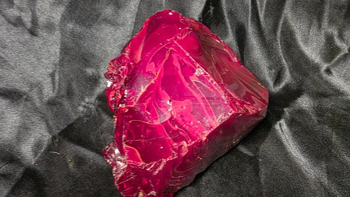 Historically referred to as cullet or slag glass, material like this emerged as a byproduct of glassmaking yet has become highly sought-after for its ornamental and artistic value. Collectors appreciate these pieces for their bold coloration and organic fracture patterns, while designers often incorporate them as statement objects in modern, eclectic, or gallery-inspired interiors. Whether positioned on a bookshelf, anchored within a curated vignette, or used as a distinctive paperweight or conversation piece, it delivers both weight and visual drama.