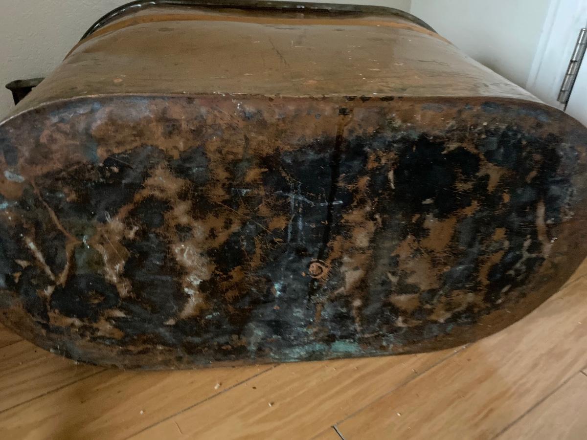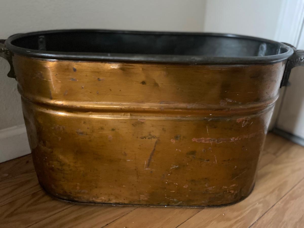 Massive antique copper washtub boiler