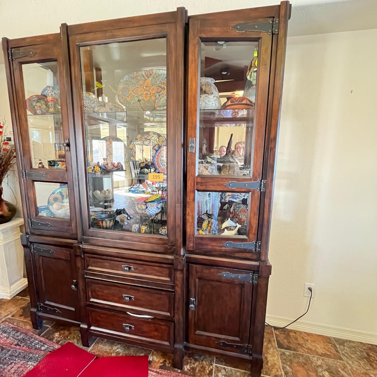 This piece is lighted and looks great! 8' tall x 5' wide. Displays well! Contents inside are sold separately.
