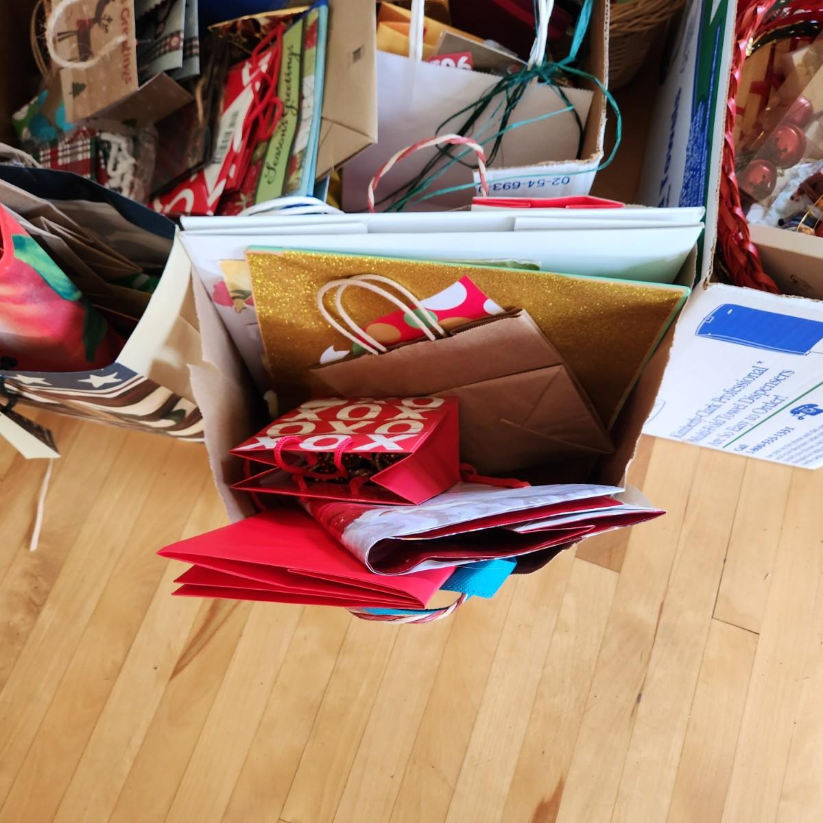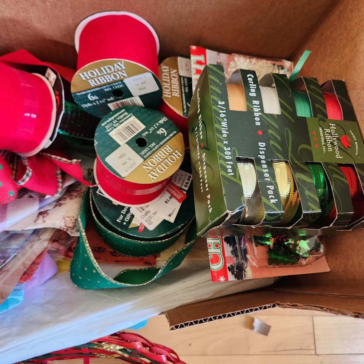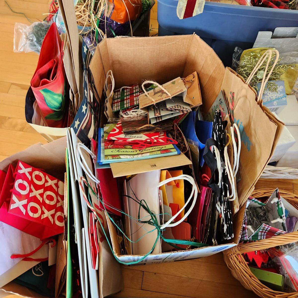 Massive Lot of Christmas Gift Bags, Ribbons, bows, WYSIWYG