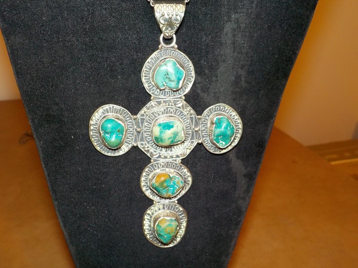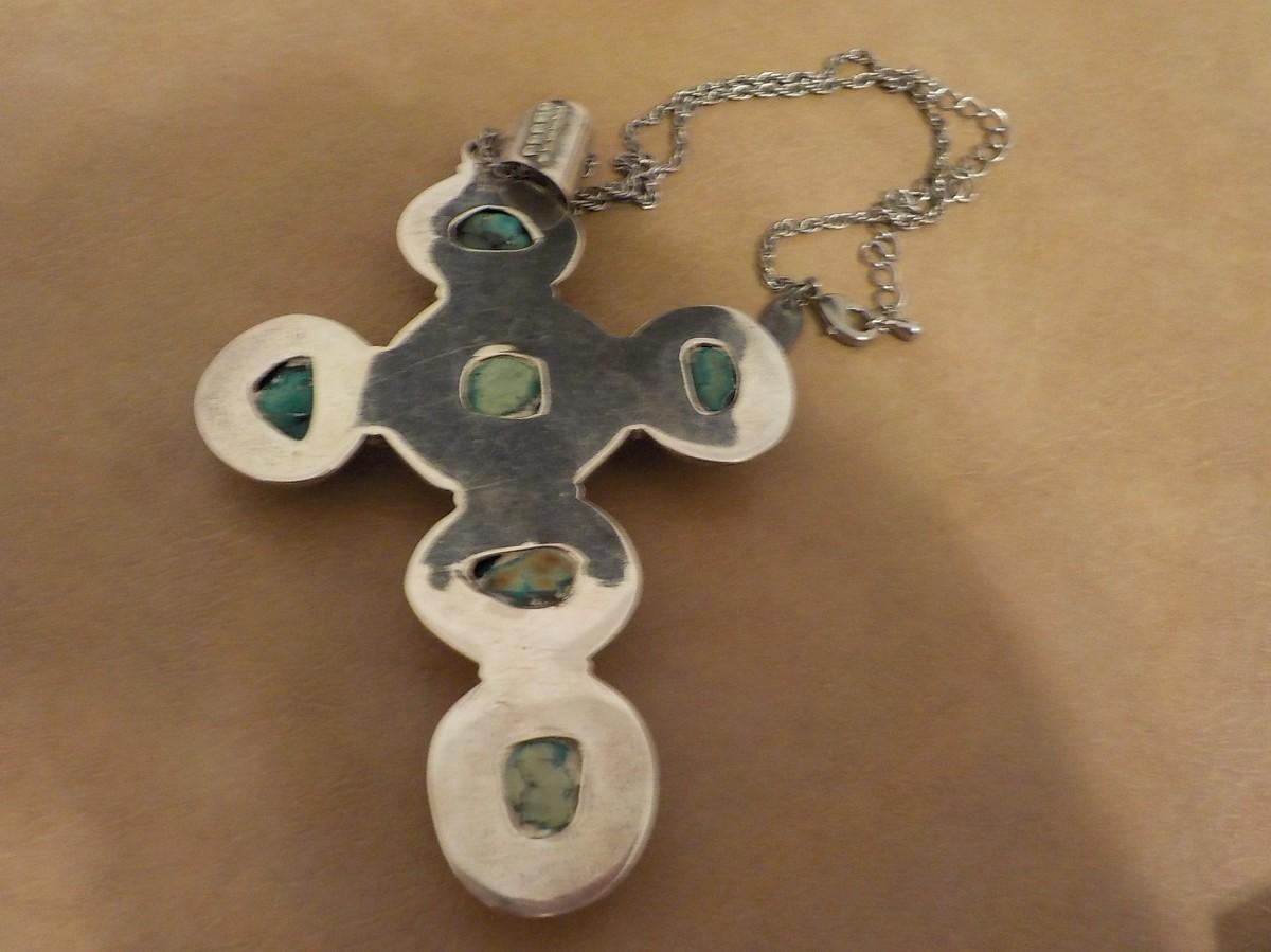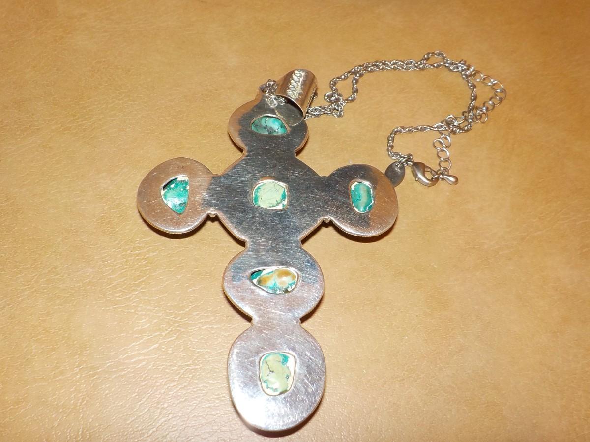 Massive size sterling silver w/ jade stones cross.