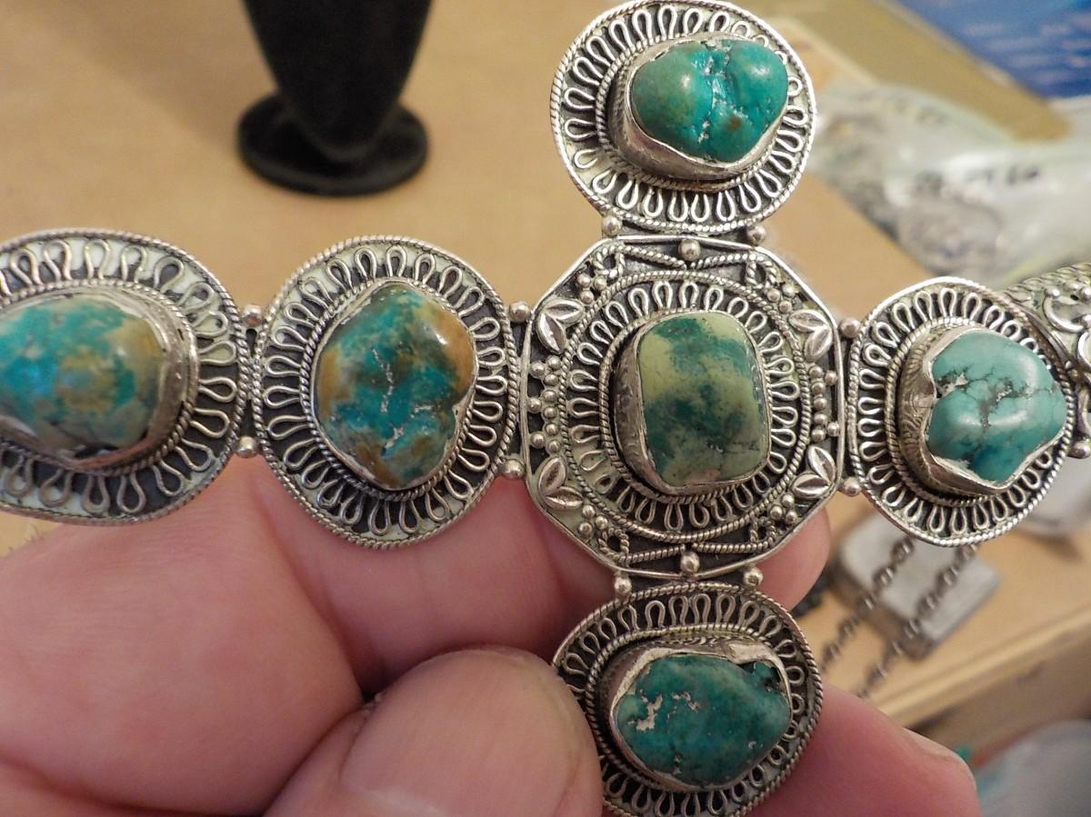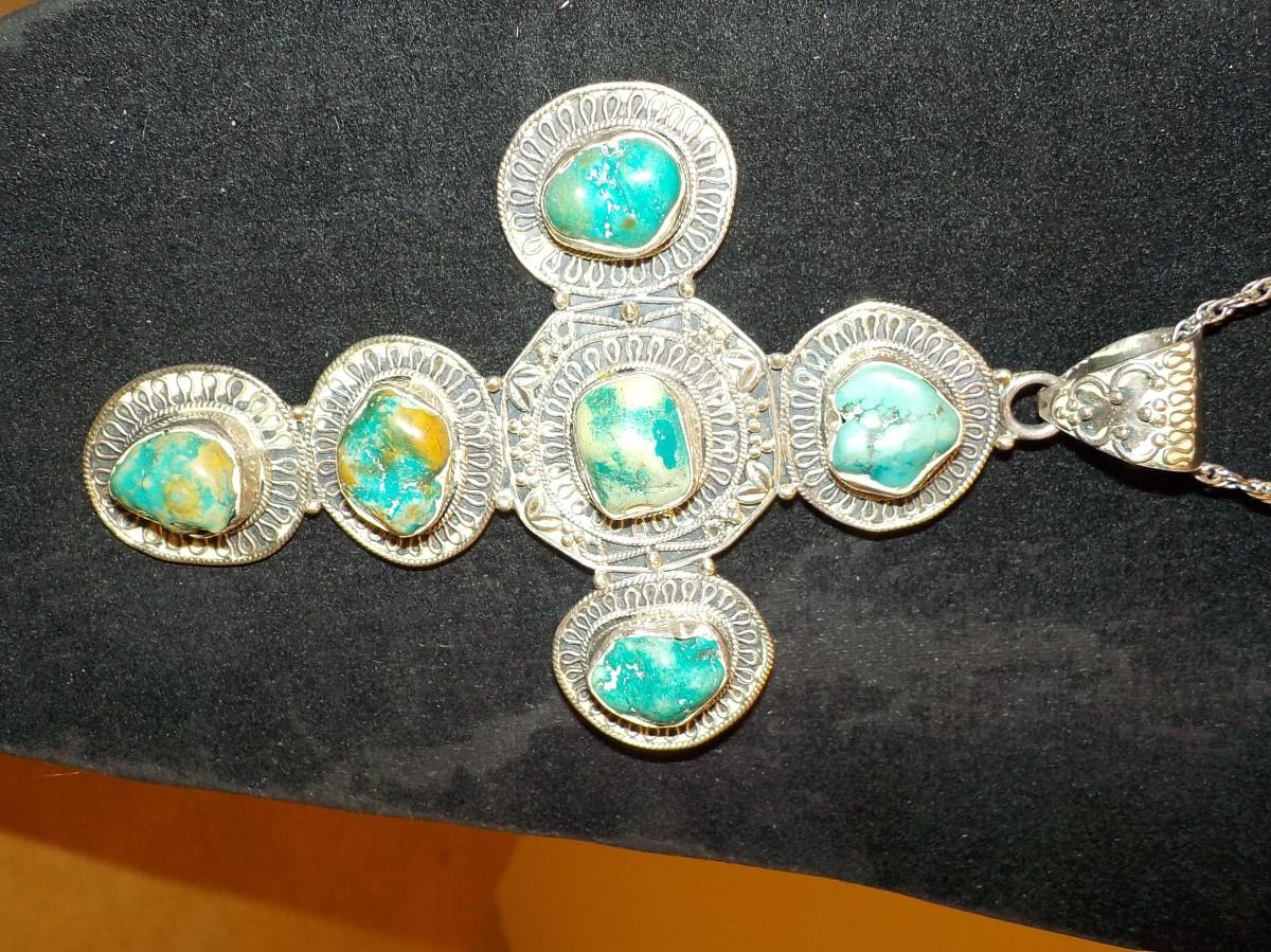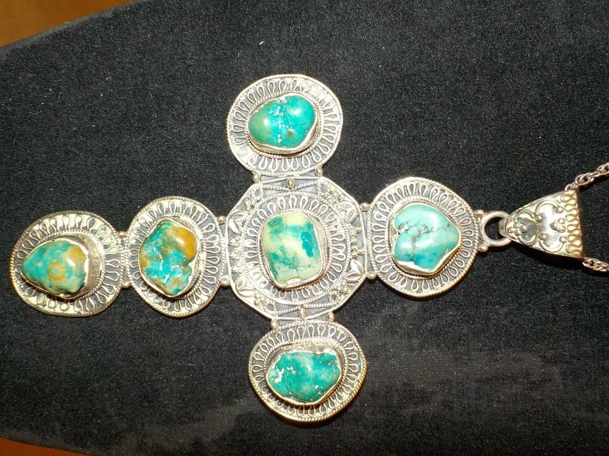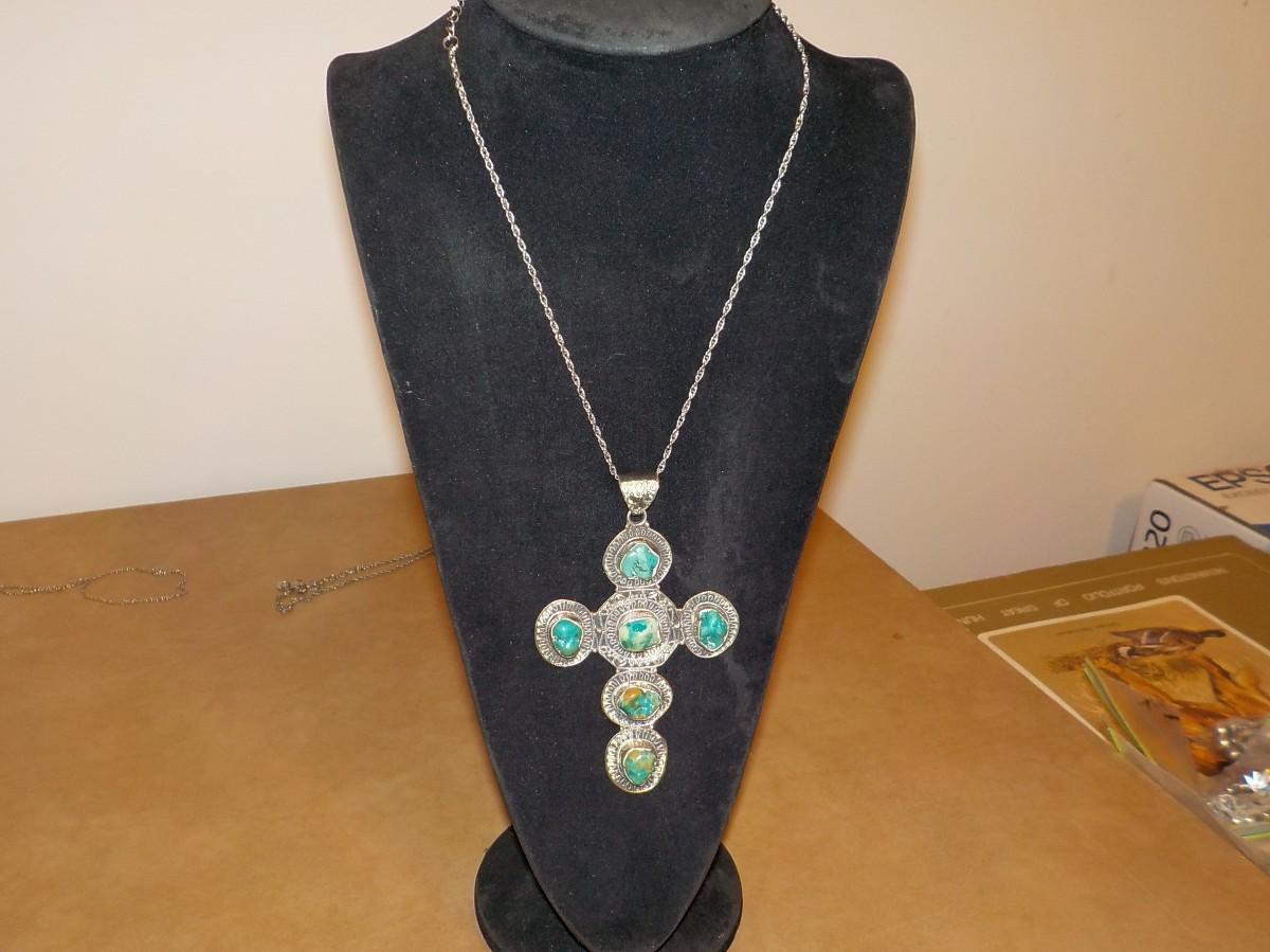 Massive size sterling silver w/ jade stones cross.