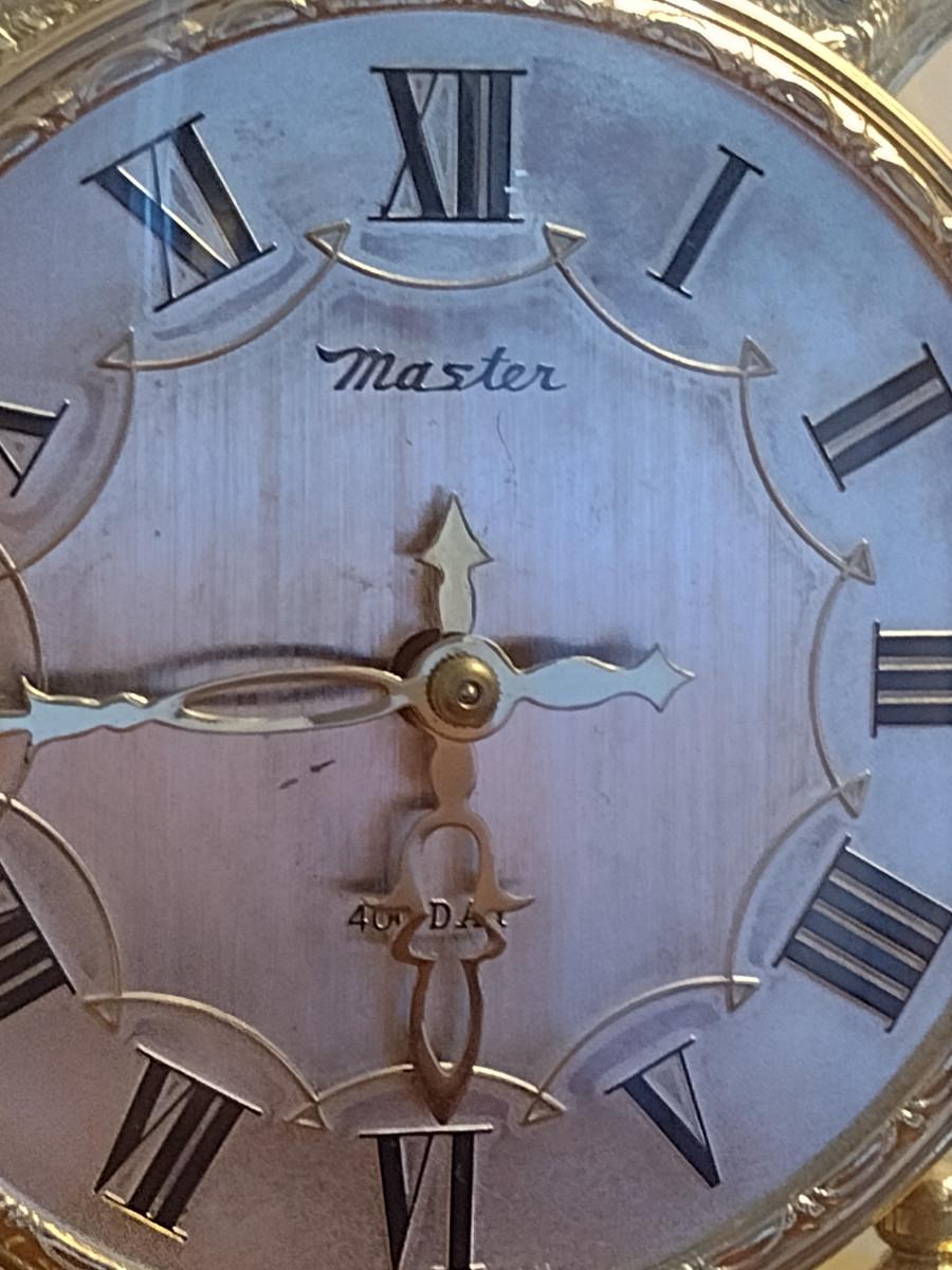 Master 40 Day Anniversary Mantle Clock with Glass Dome. Item is untested.