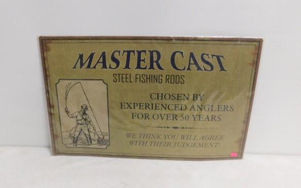 Master Cast Steel Fishing Rods Metal Sign Reproduction 24"x 15"