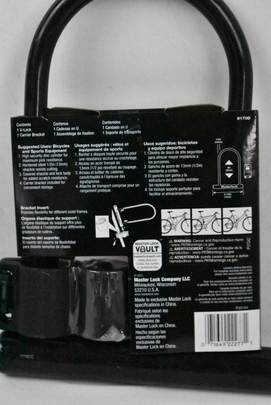 Master Lock 8170D Hardened Steel Bicycle U-Lock, 6-1/8 in. (15cm) Wide with 8 in. (20cm) Shackle - New