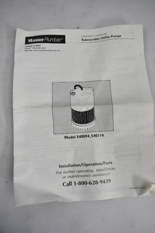 Master Plumber 1/4 HP Submersible Utility Pump - Works