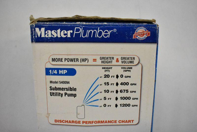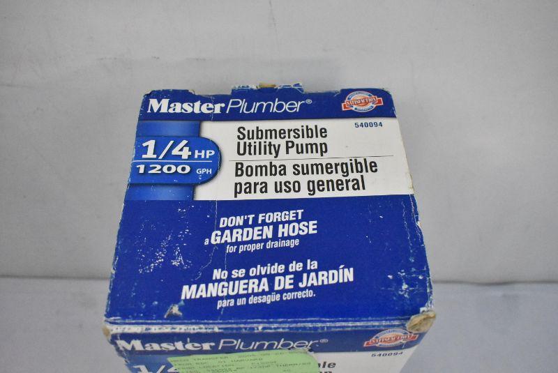 Master Plumber 1/4 HP Submersible Utility Pump - Tested, Works
