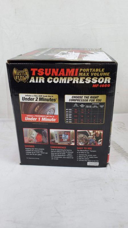 Masterflow 12v High Volume Air Compressor / Inflator, Open Box - New
