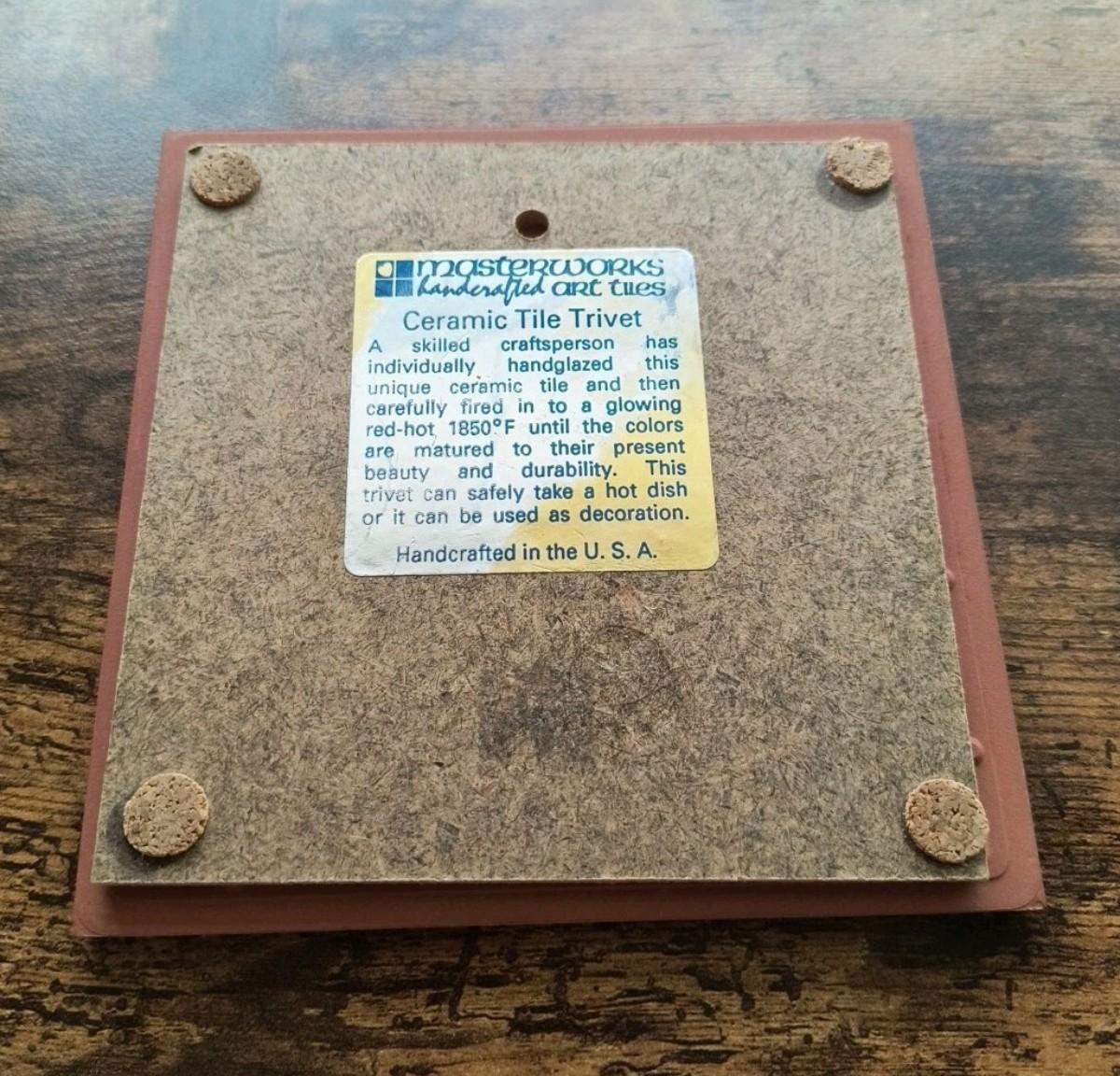 Masterworks Ceramic Tile Trivet Handcrafted footed 6"*6" Kitchen cottage core