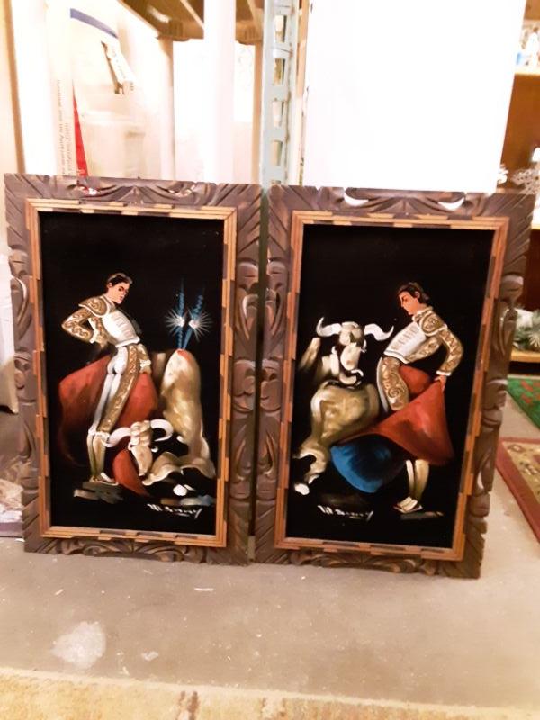 Painting on Velvet by Manny. Vintage pair. 23x14 ea. Sparkly pants!