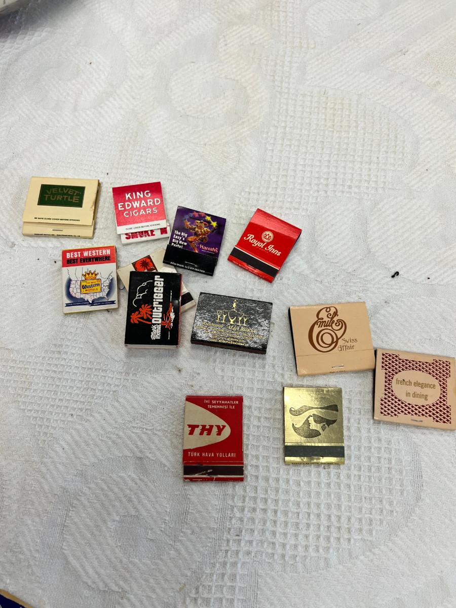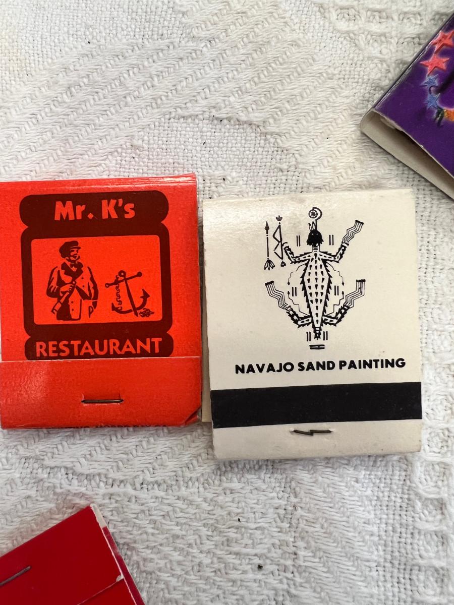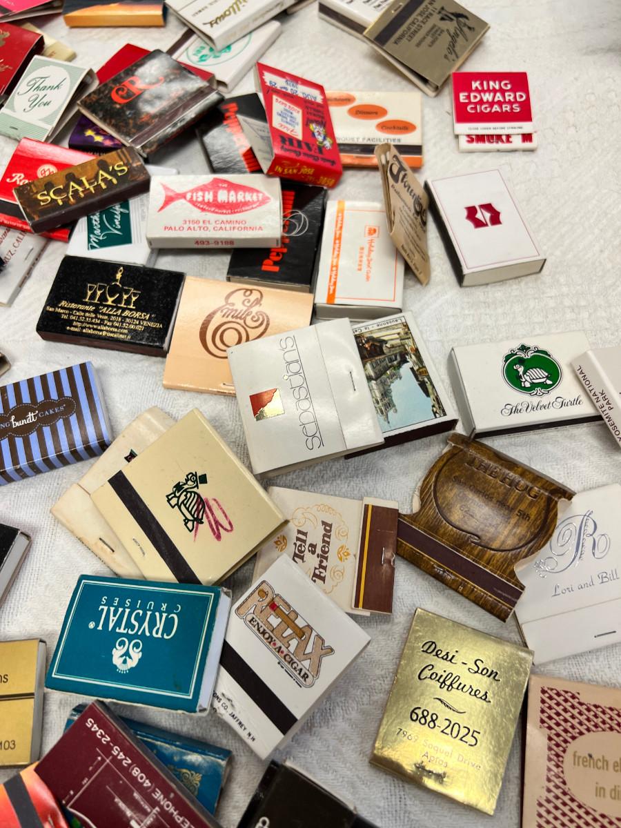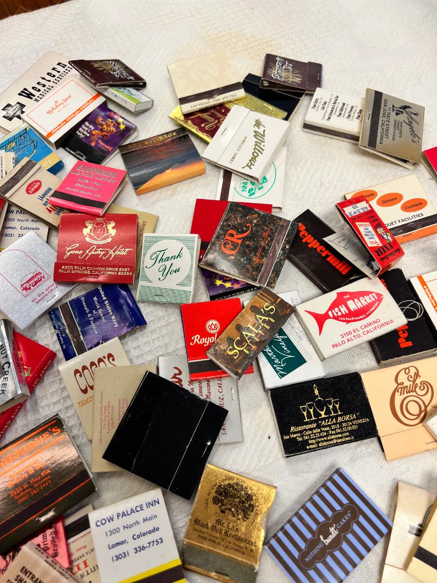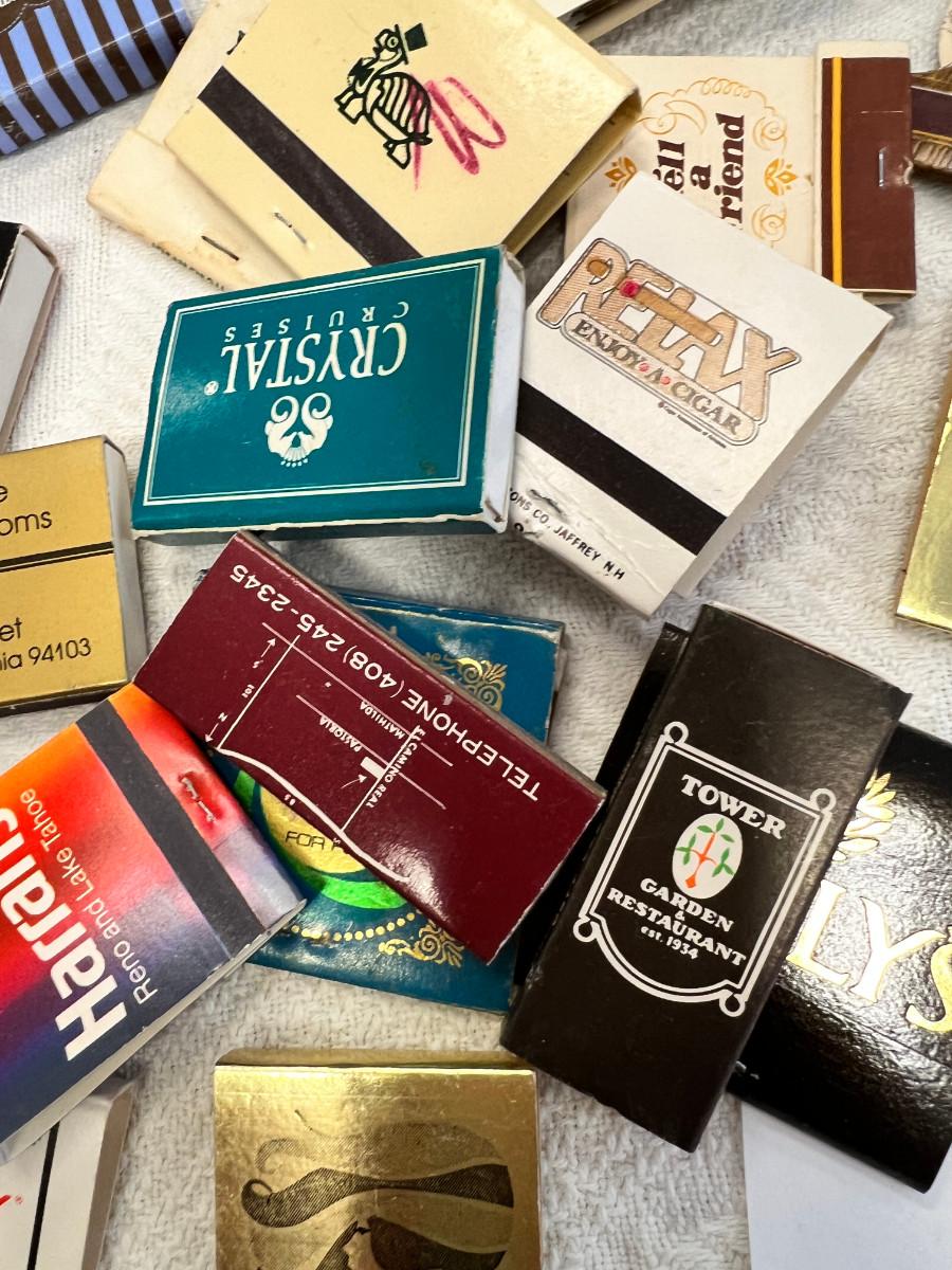 Shipping available with or without the bowl. Large bowl suitable to all kinds of display, plants, fish and full of my match collection. un-struck, many local San Jose area mixed with matches from vintage travel, restaurants.