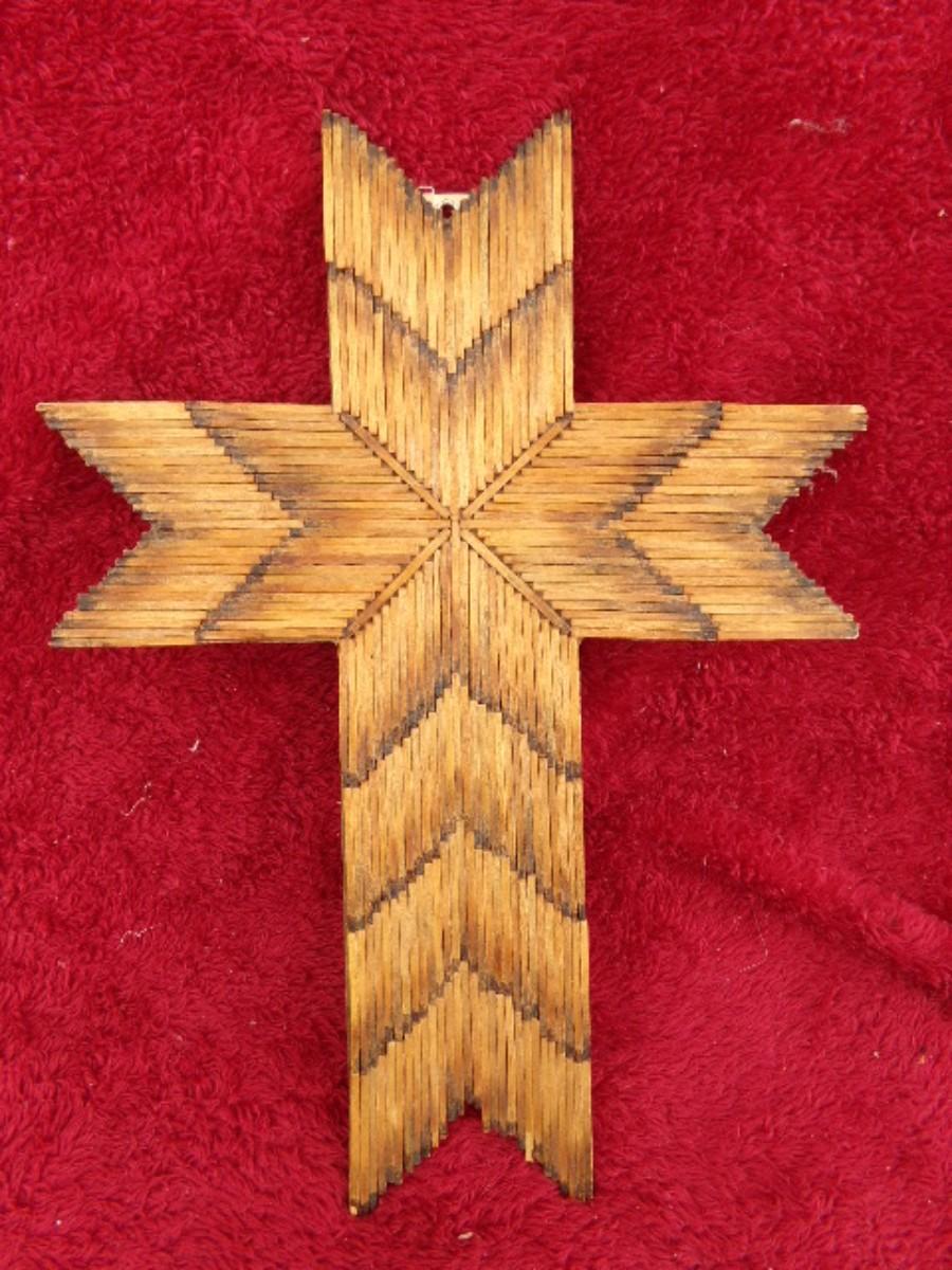 Match stick crafted art wall decor. Yes, it’s made with a bunch of wooden match sticks all clued together. About 12" tall.