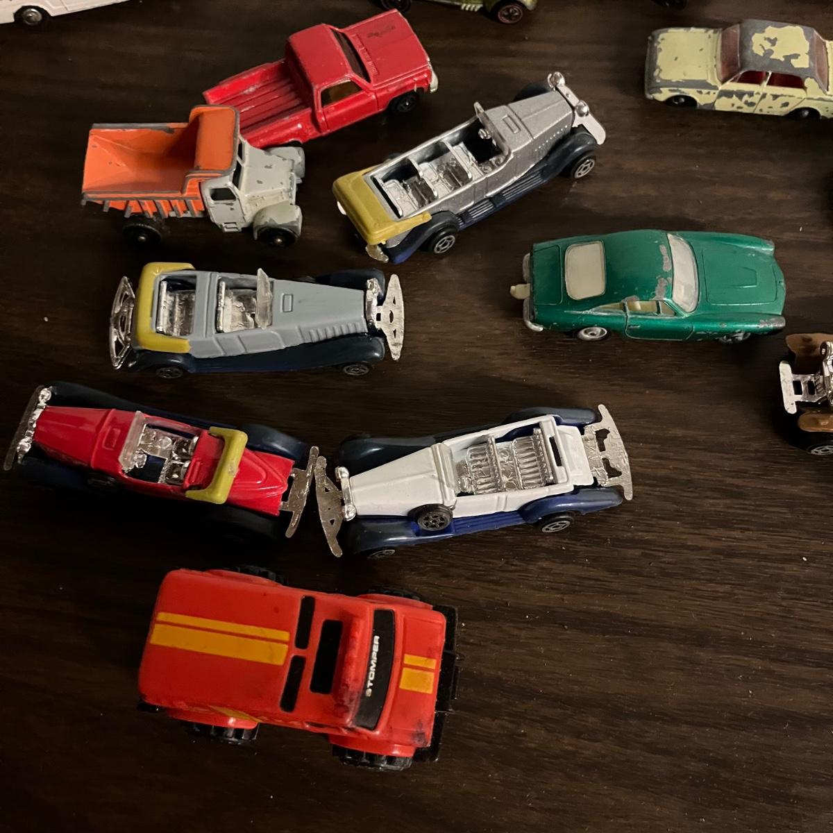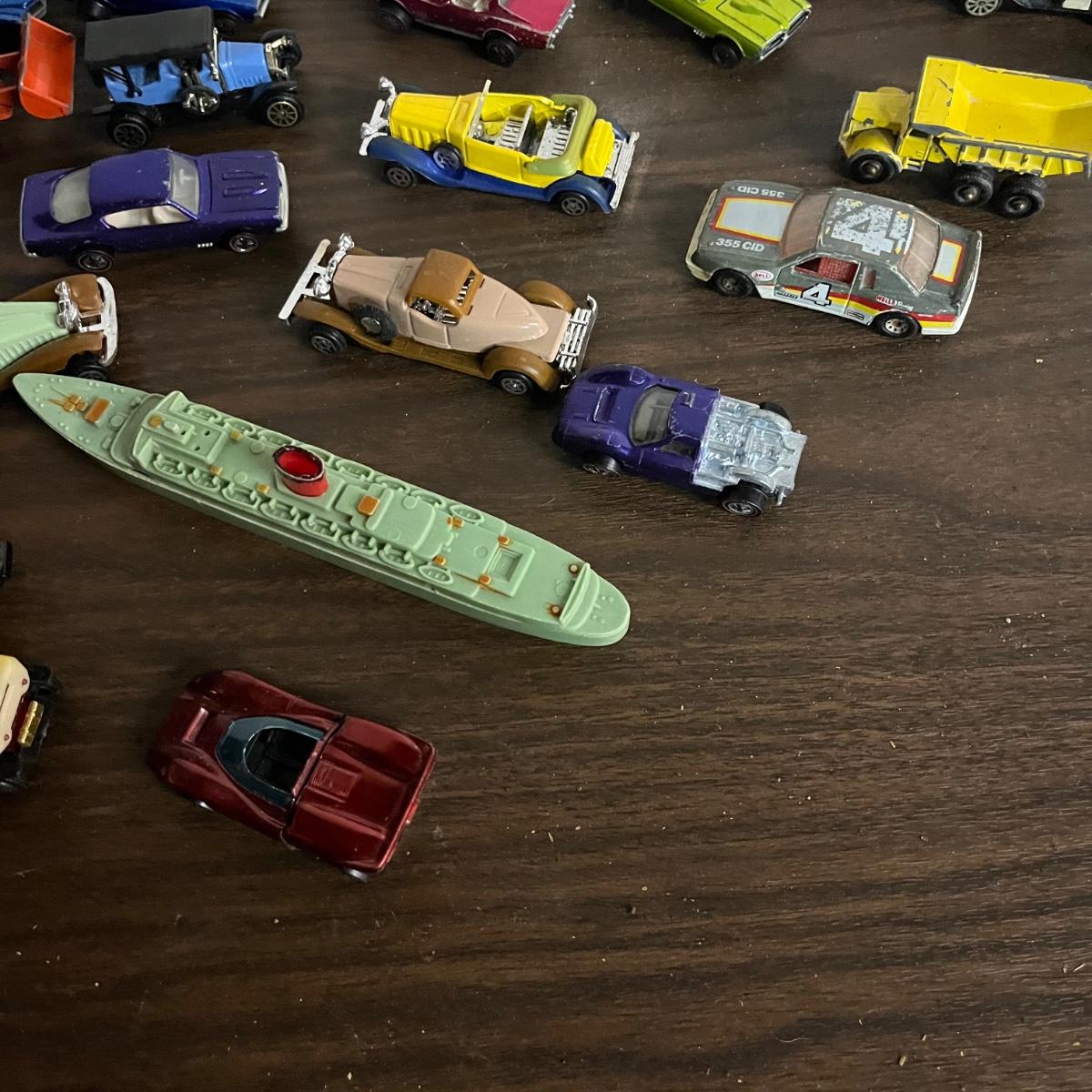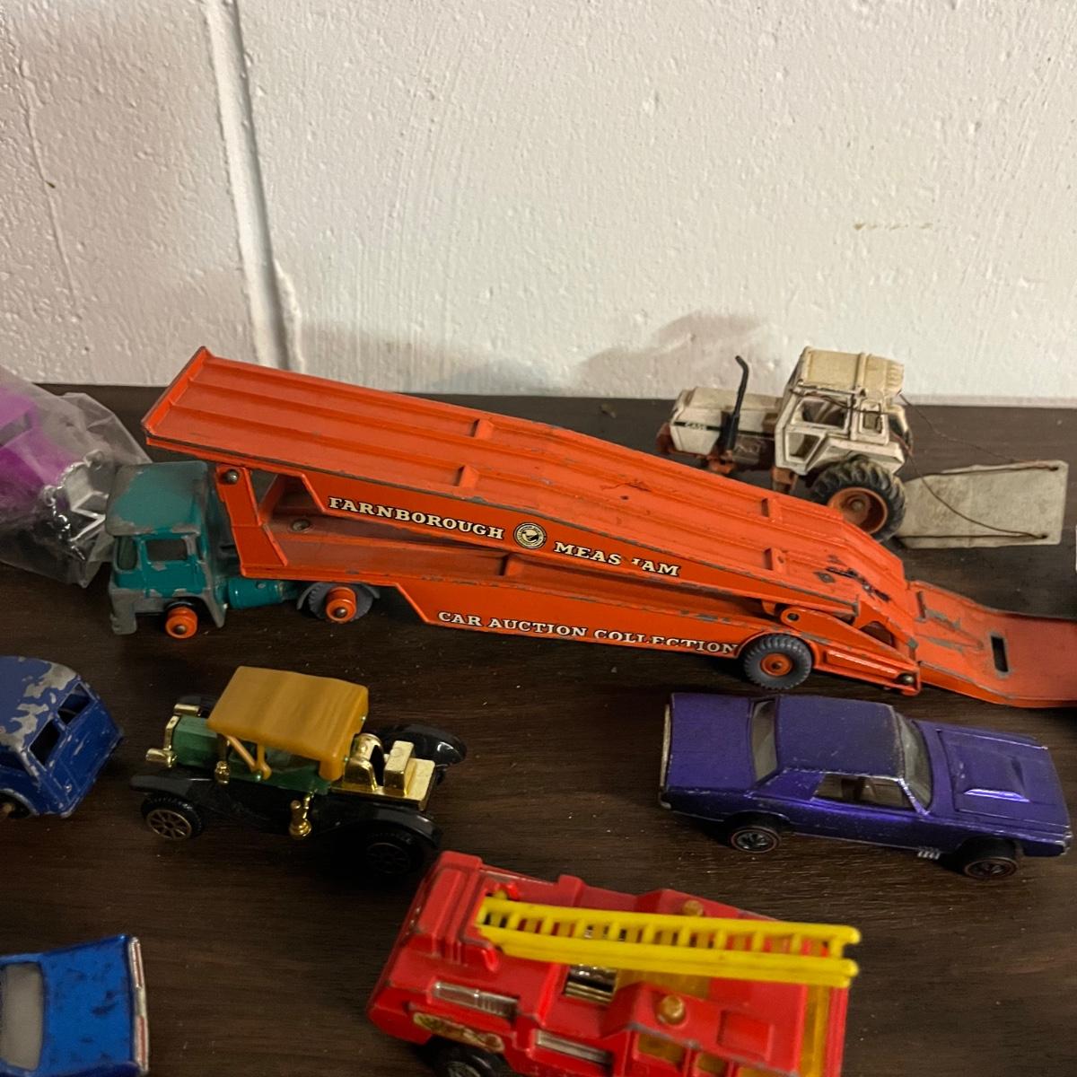 Lot includes a large collection of Matchbox cars, Lesney cars and some marked made in China. Cars have been well loved and have scratches and some are missing wheels.