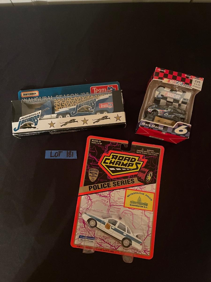 Matchbox inaugural season 1995 NFL Jaguars semi, Road Champs diecast metal police series Metropolitan police Washington DC, Trevco Nascar 2002 mark Martin #6