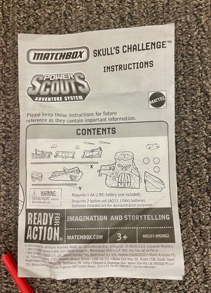 A part of the Power Scouts Adventure System series. Set is nearly complete; missing 1 gem eye and 1 projectile.