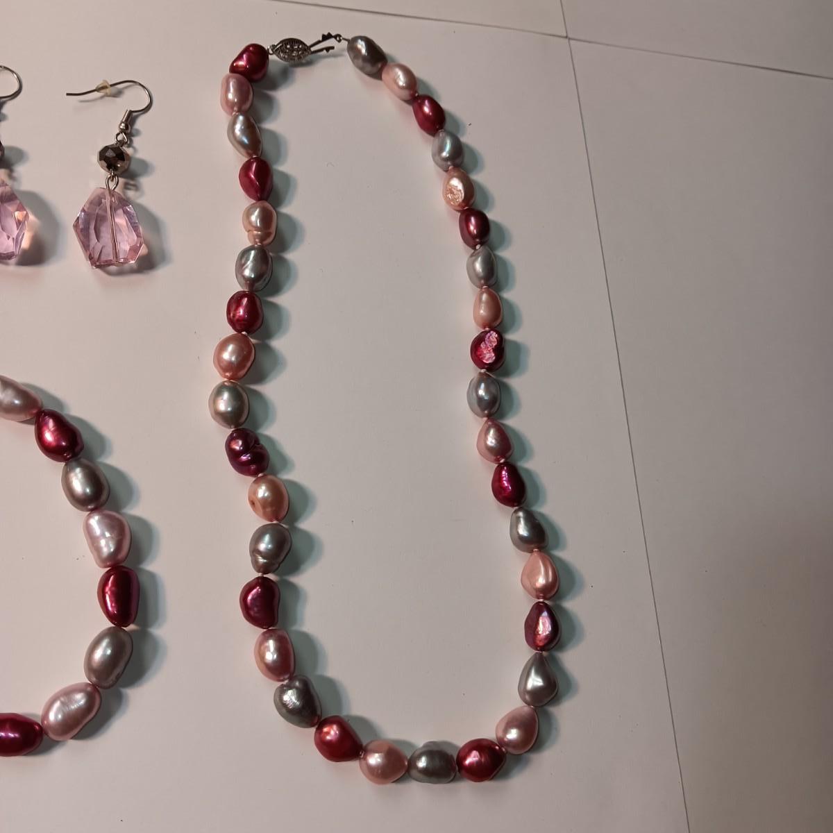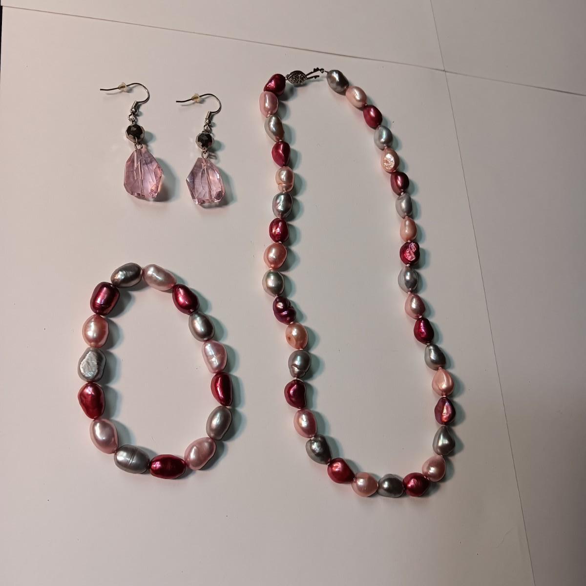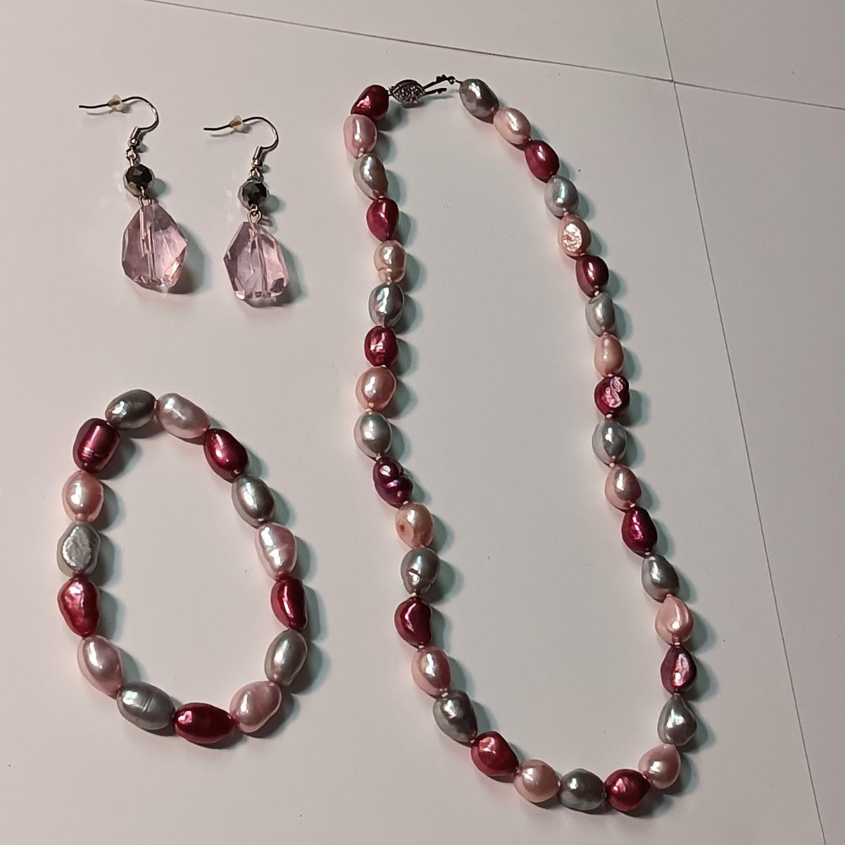 MATCHING BEADED NECKLACE AND BRACELET PLUS GLASS BEAD EARRINGS
