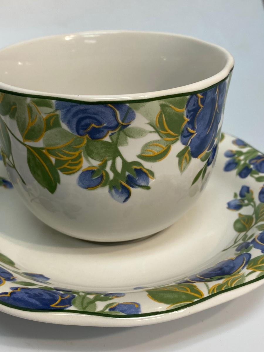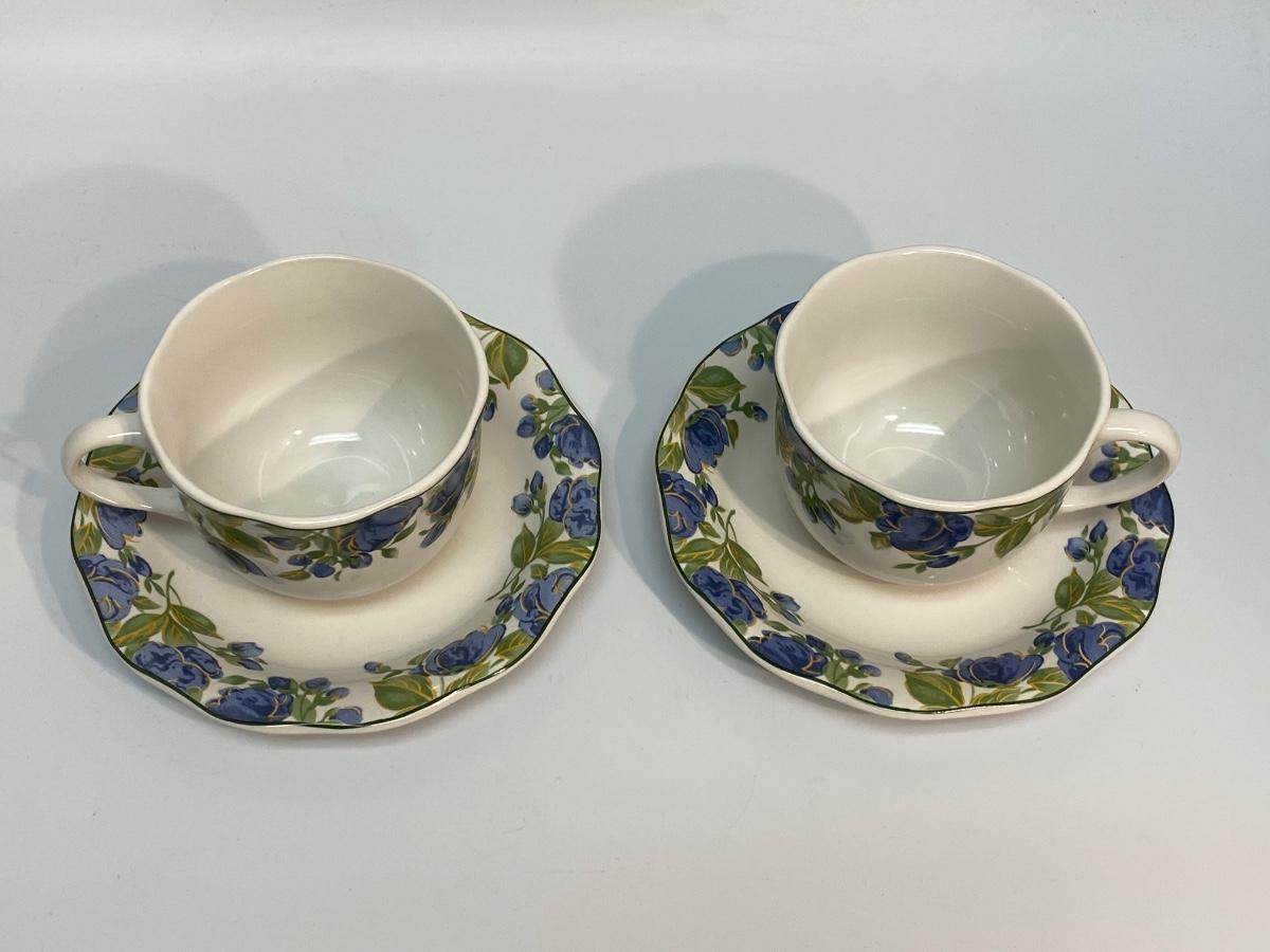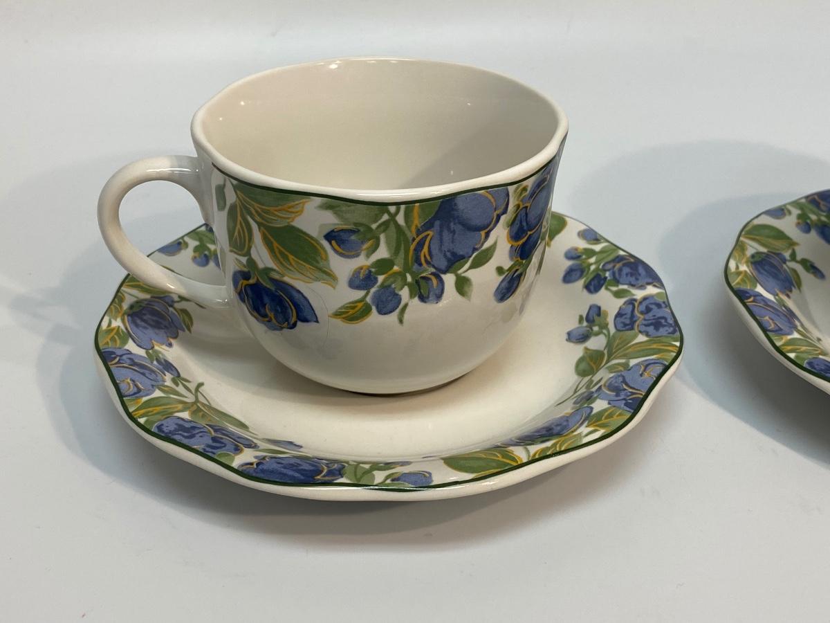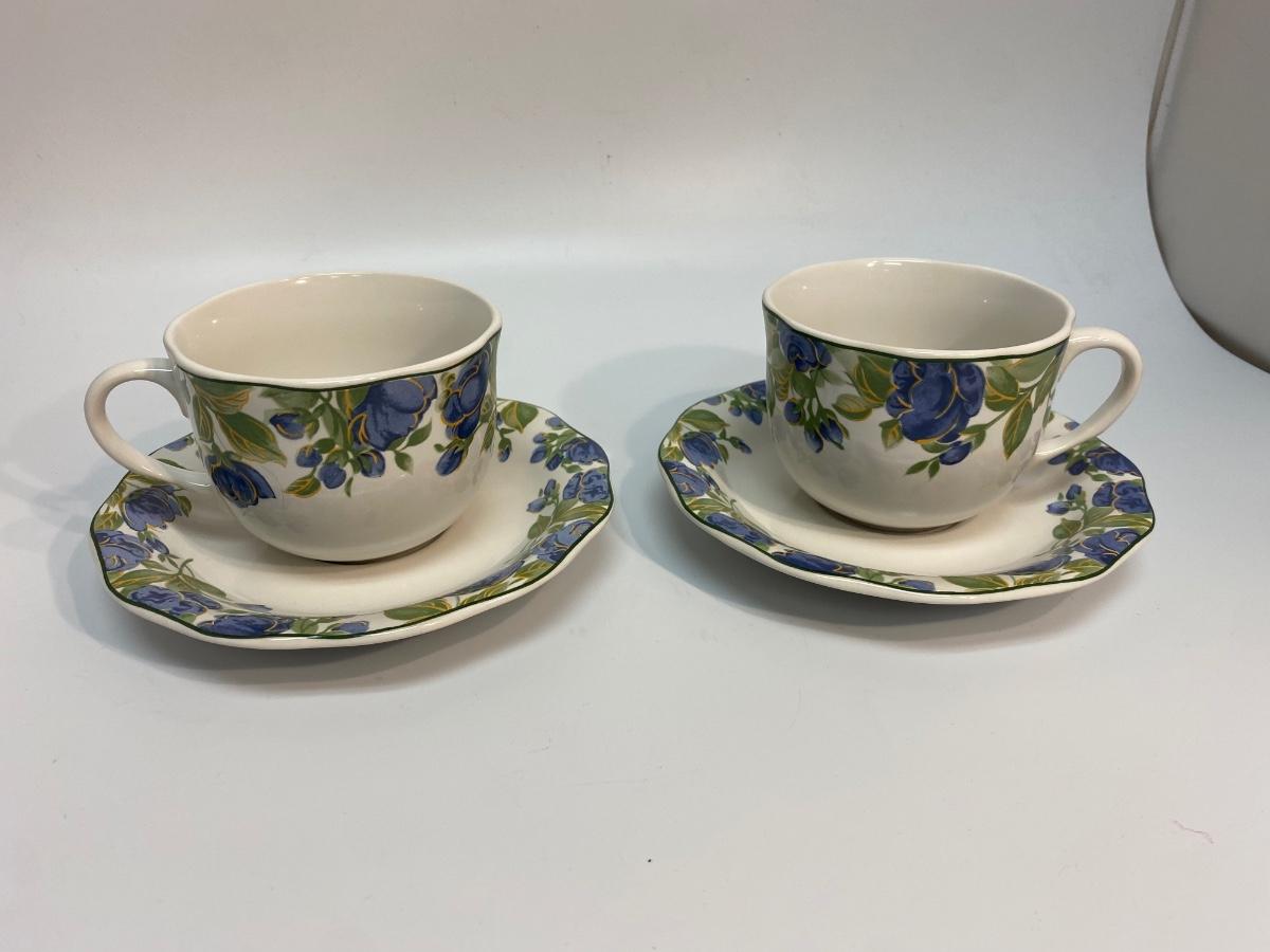 Matching Blue Floral Teacup & Saucer Set of 2. Good condition.
