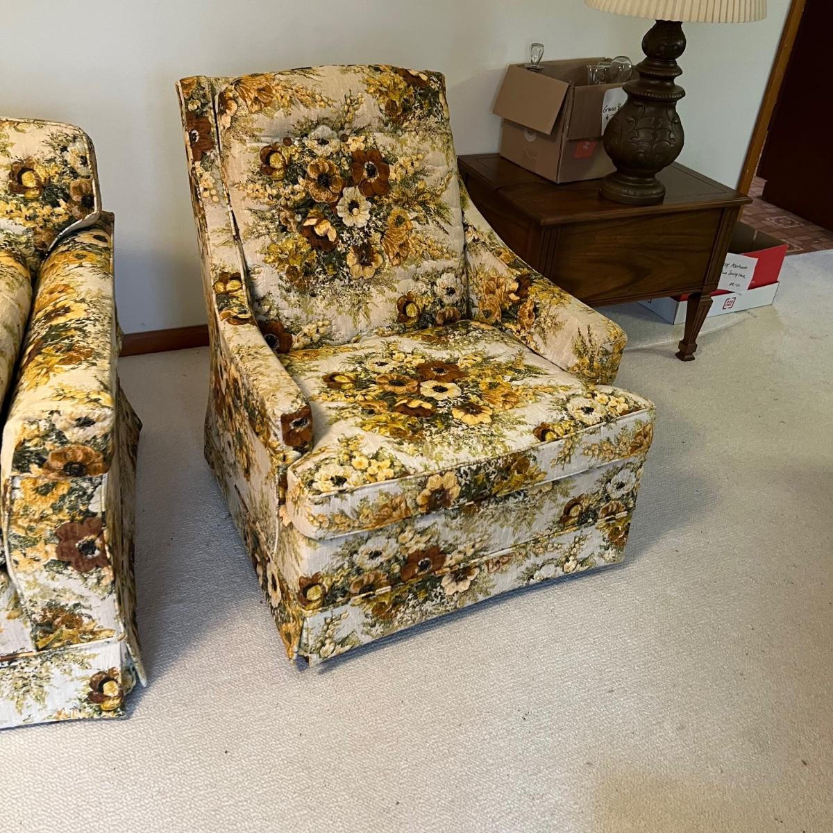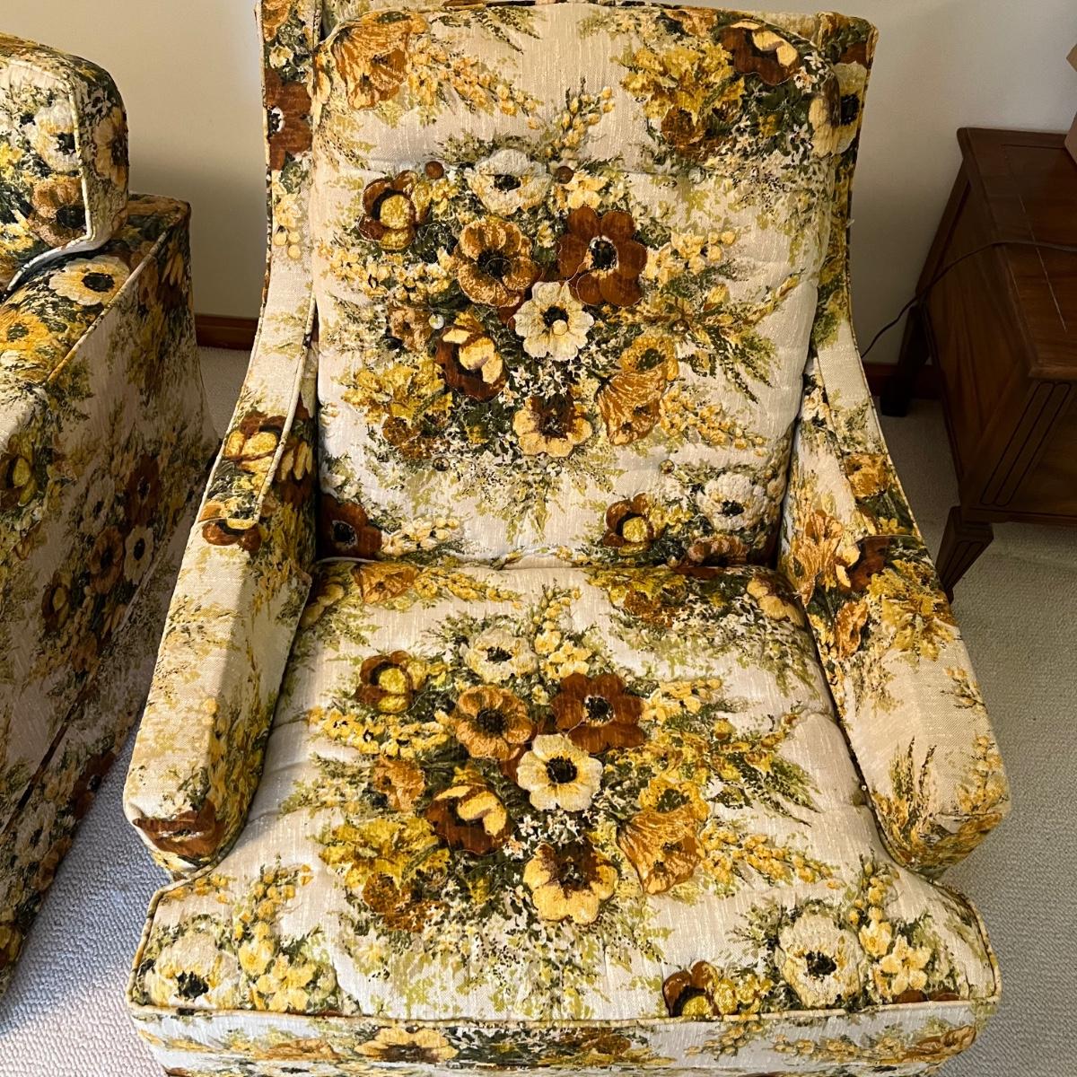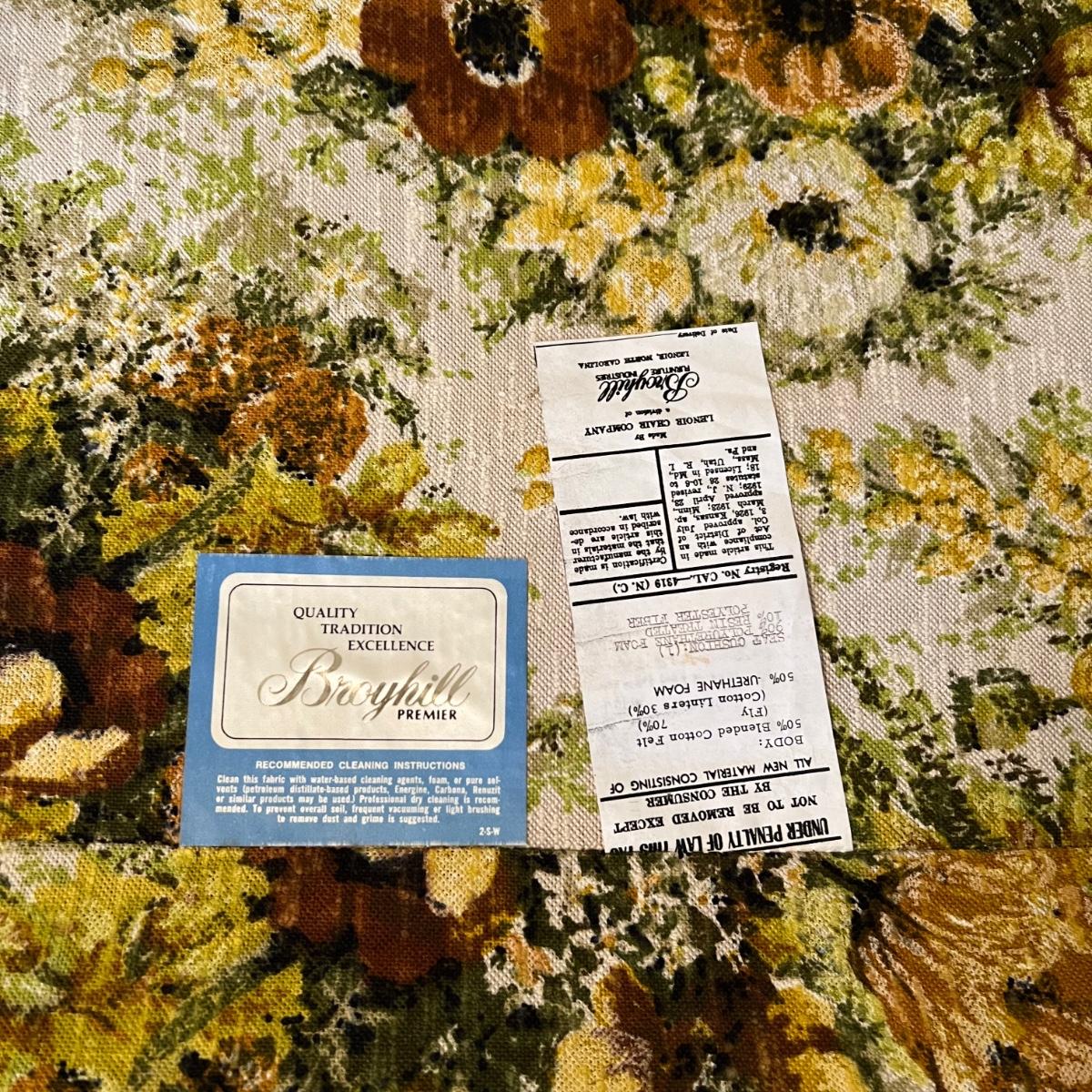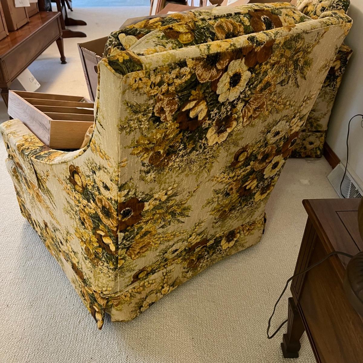 This chair by Broyhill has a floral upholstery. It is in good condition. Cushion covers are removable.