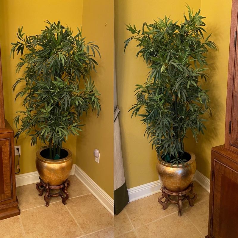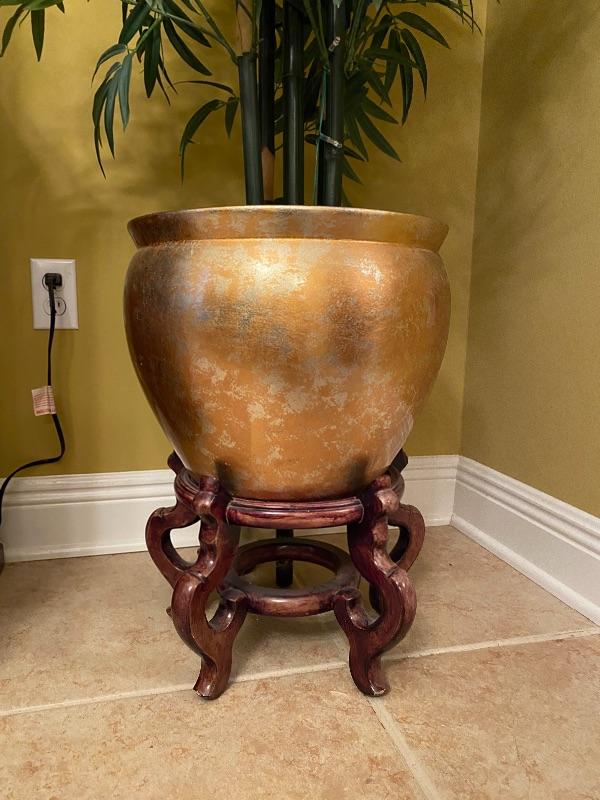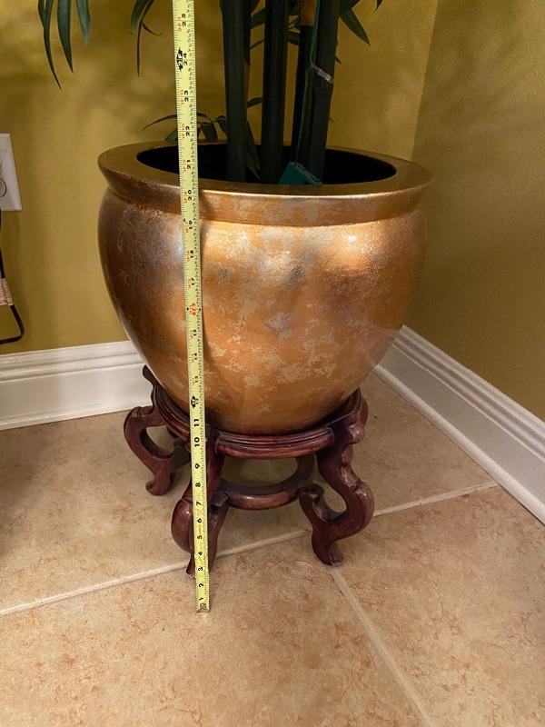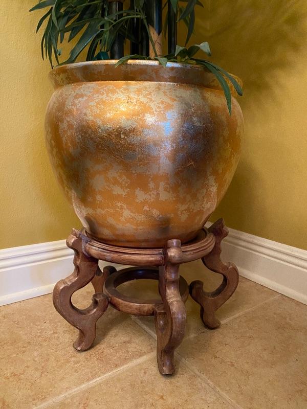69” Tall / Wood Stand / Gold & Silver mix Ceramic Urn / Removable Trees