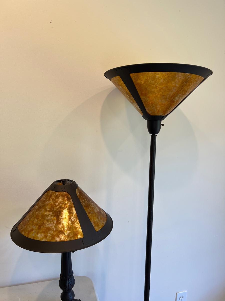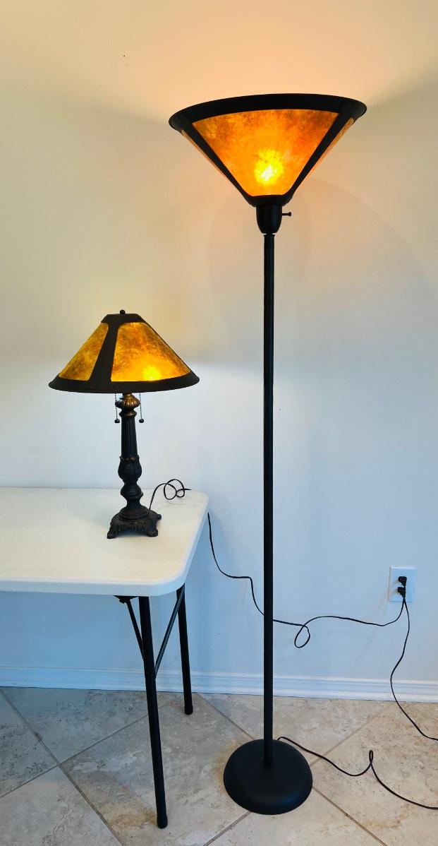 Matching set. Floor Lamp measures 70 inches tall. Table Lamp measures 25 inches tall.