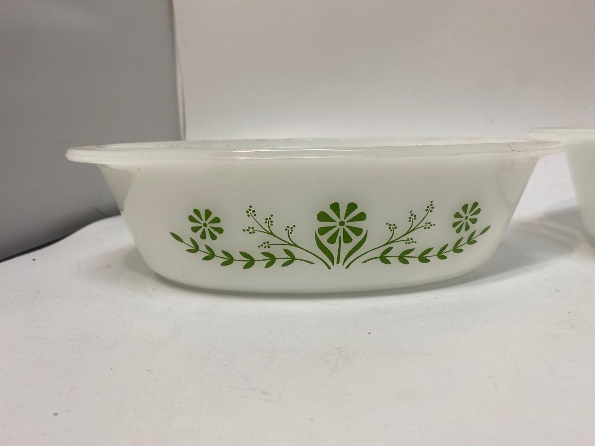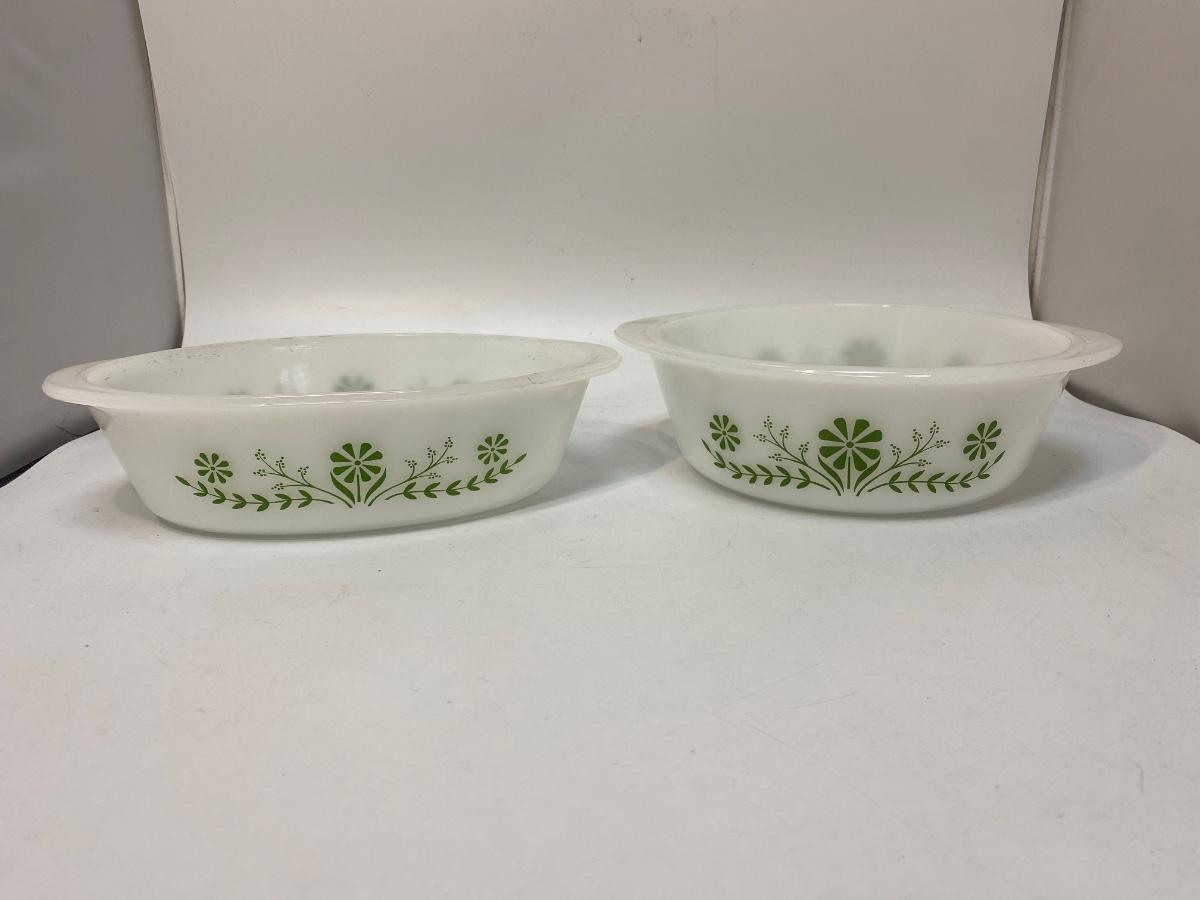 Matching Green Flower Floral Glasbake Casserole Baking Dishes