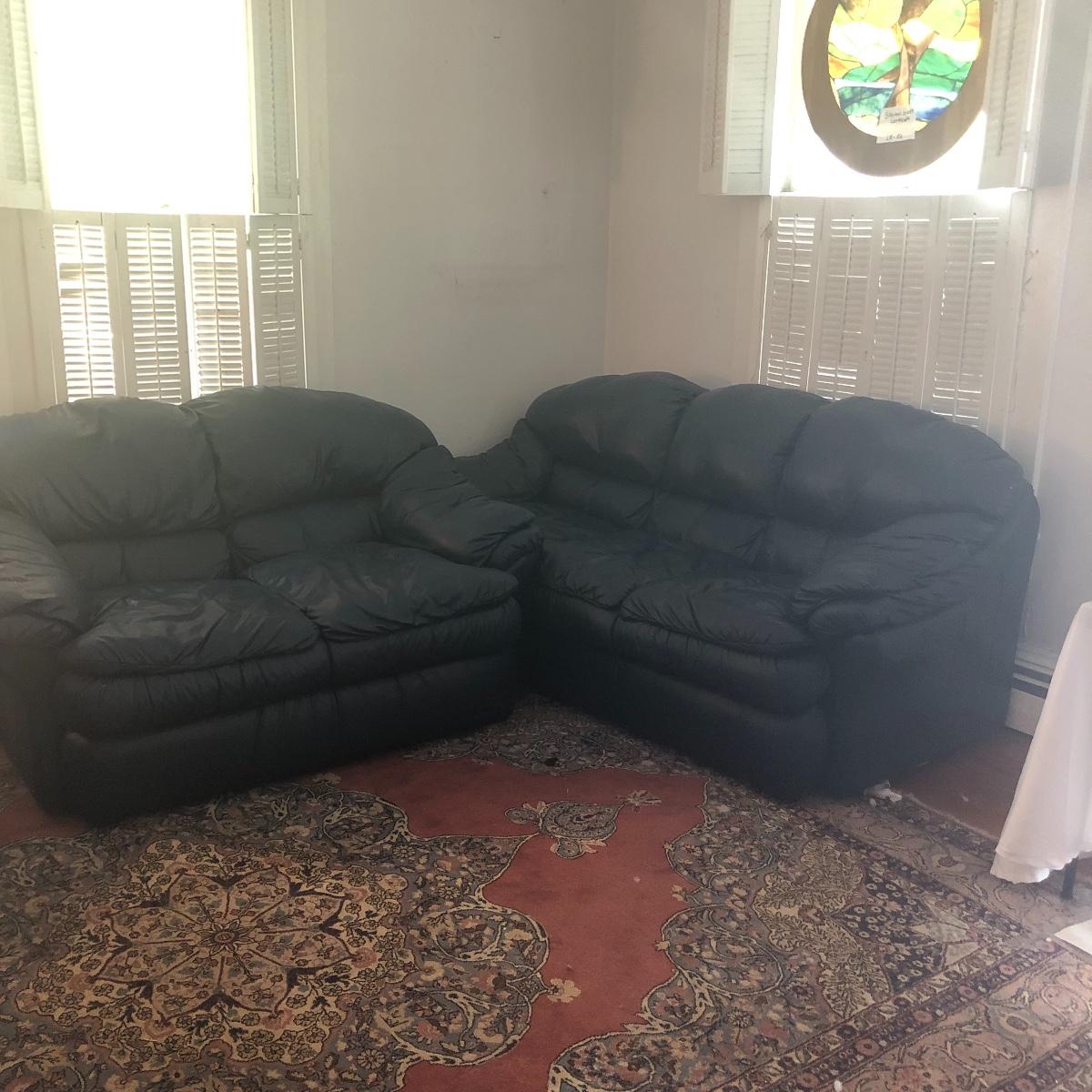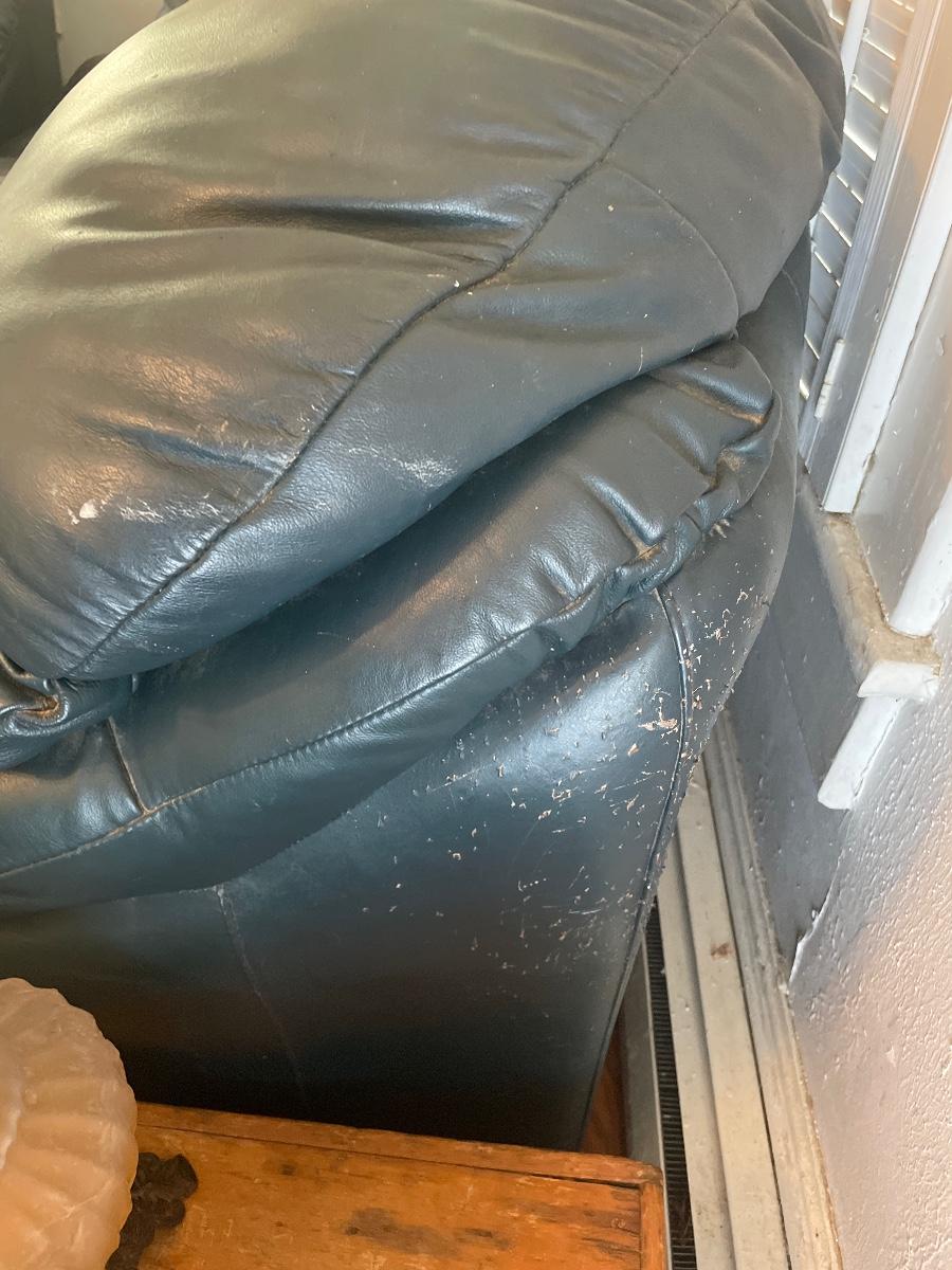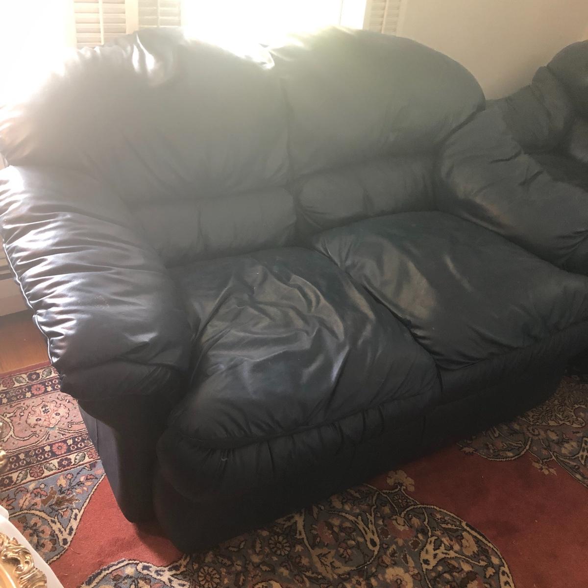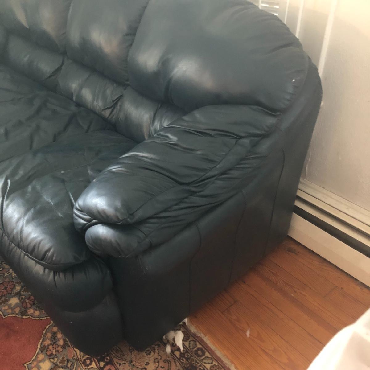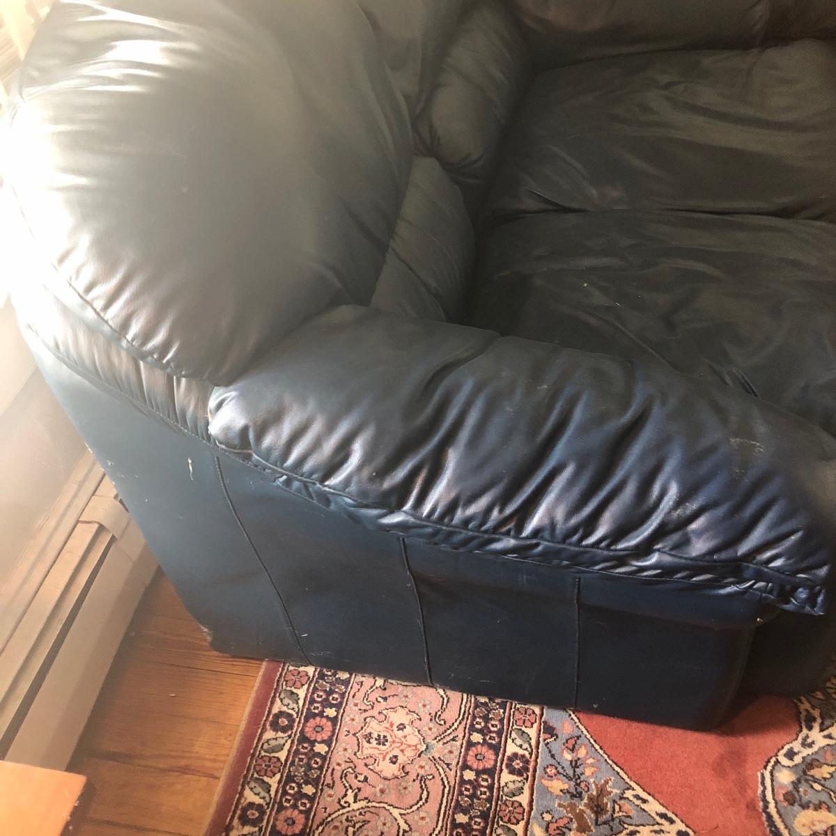 These two sofas are made by Leatherend in blue leather. Their are some scratch marks on the backs. And the soda does have a slight animal odor. The sofa measures 81” wide x 40” deep x 35” tall.