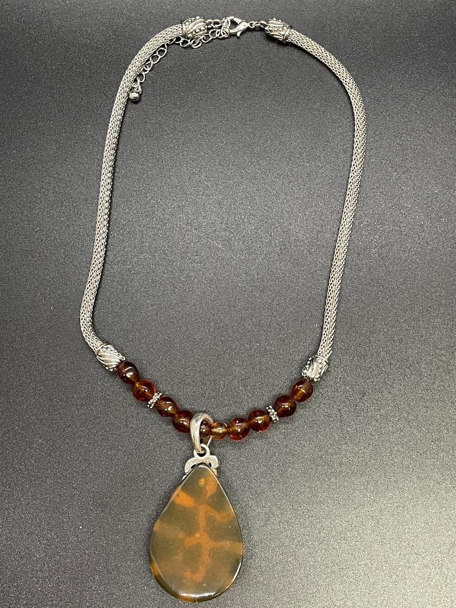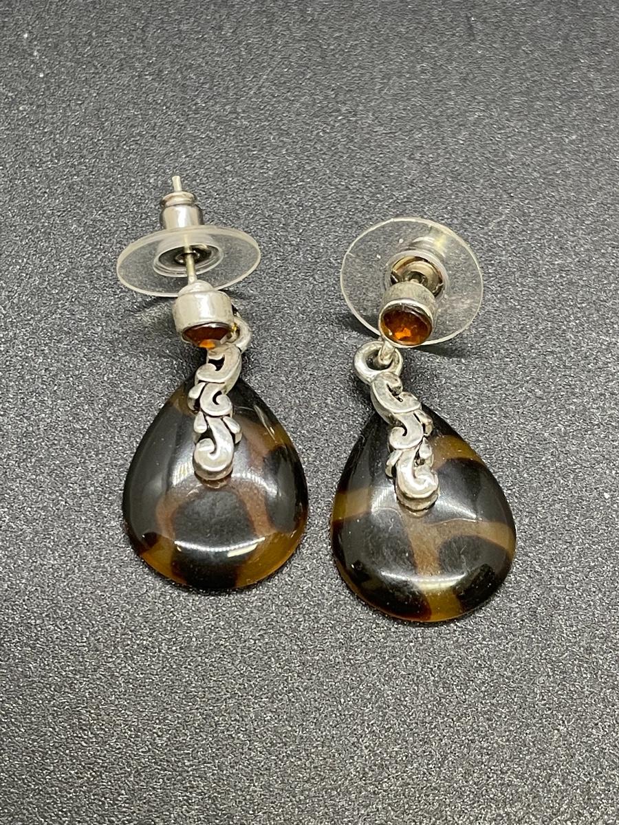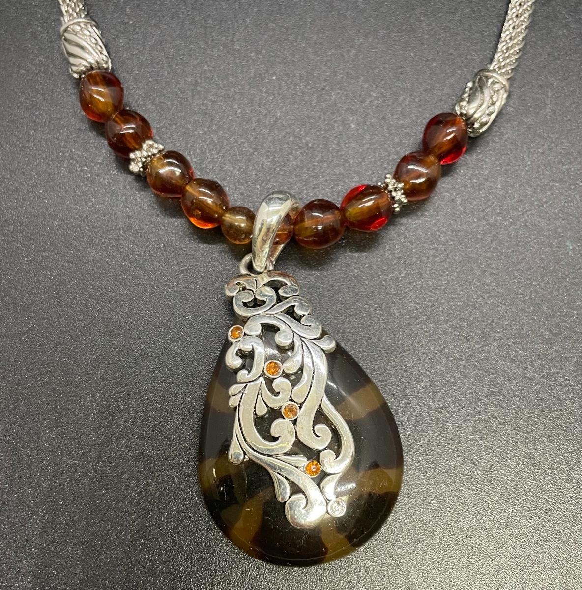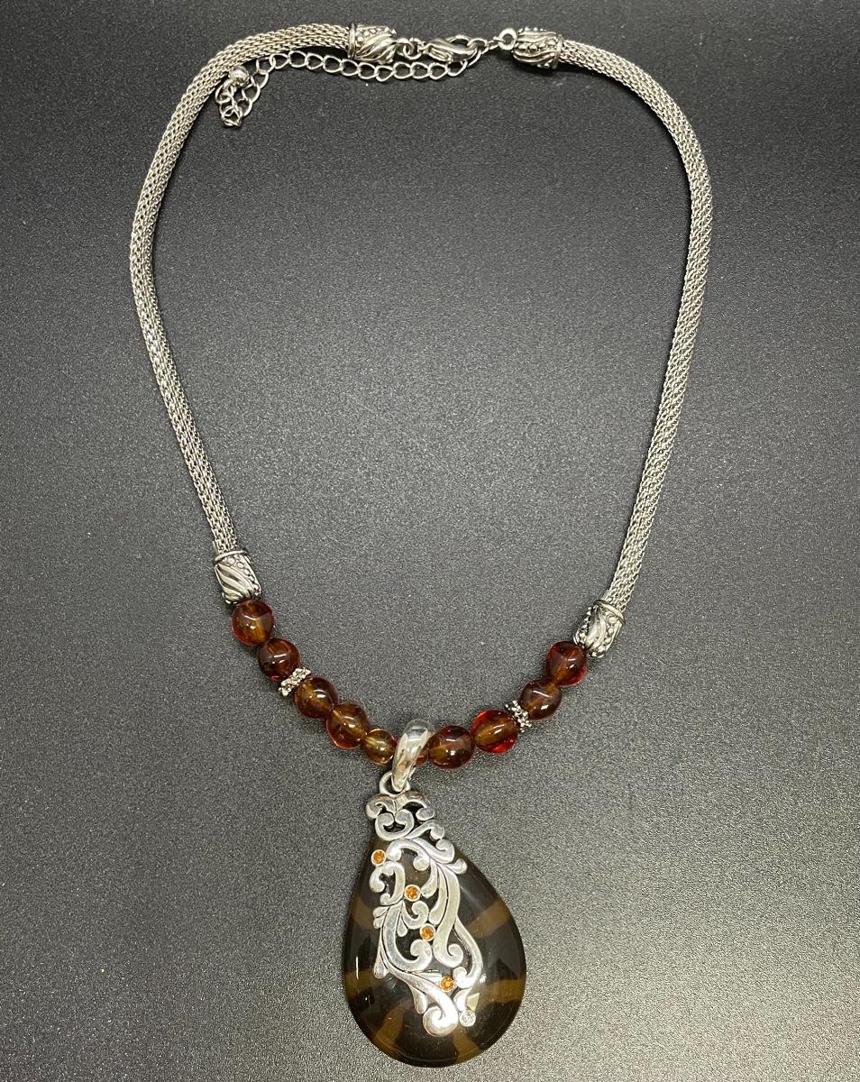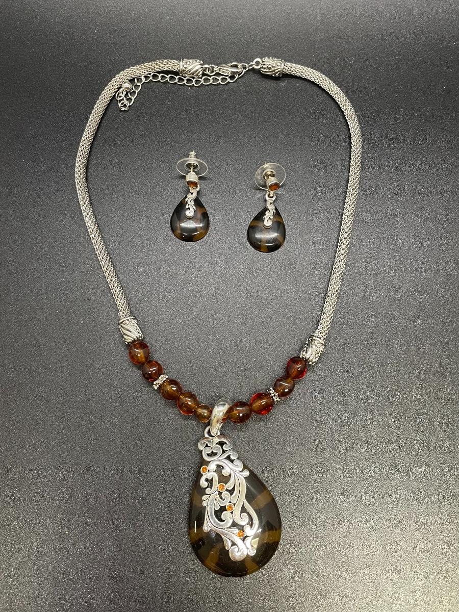 Matching Silvertone & Tortoise Shell Necklace and Earring Set