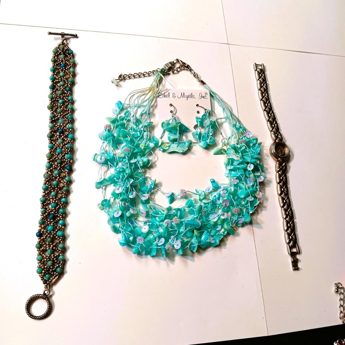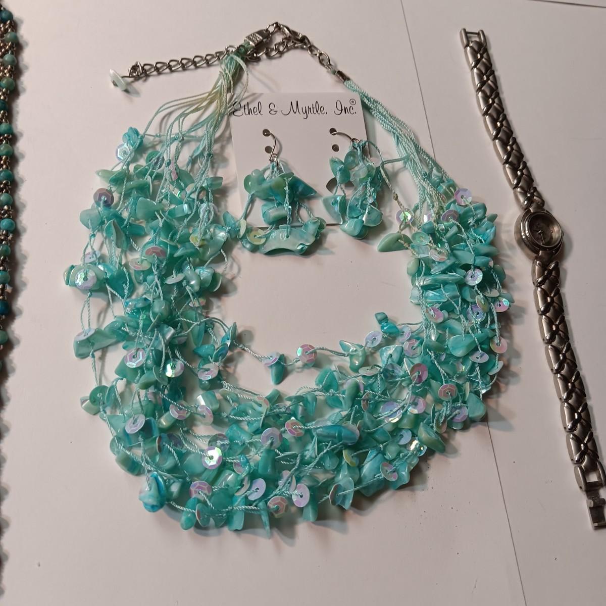 MATCHING NECKLACE AND EARRINGS, BRACELET AND WATCH
