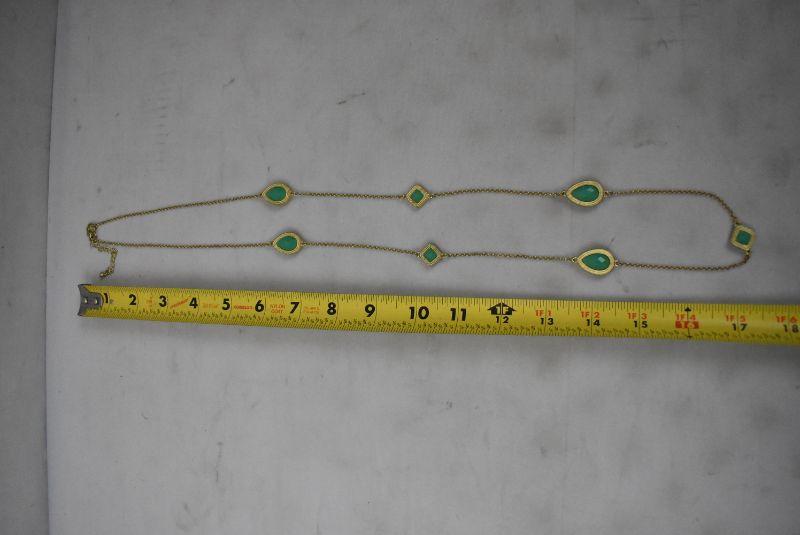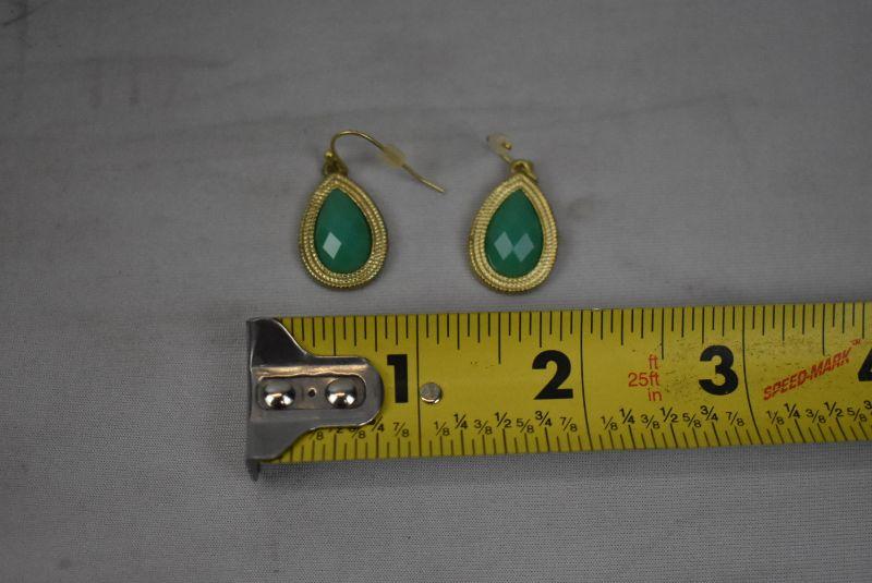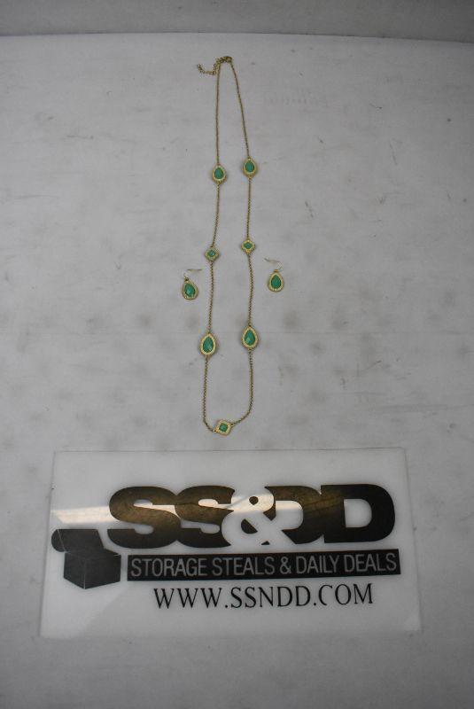 Matching Necklace & Earrings Set. Gold Tone And Aqua Green
