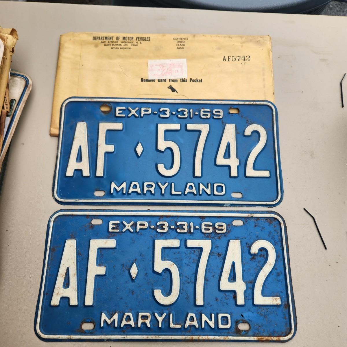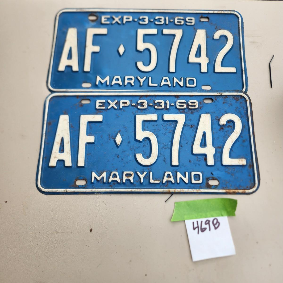Matching Pair (2) Maryland License Plate 1969 AF5742