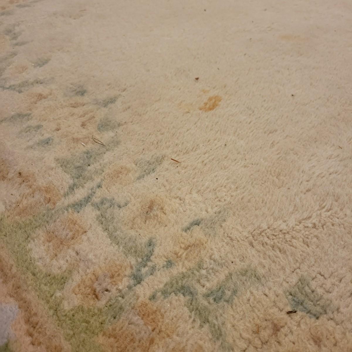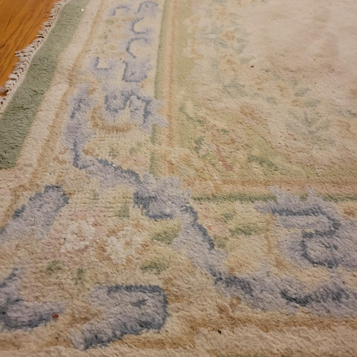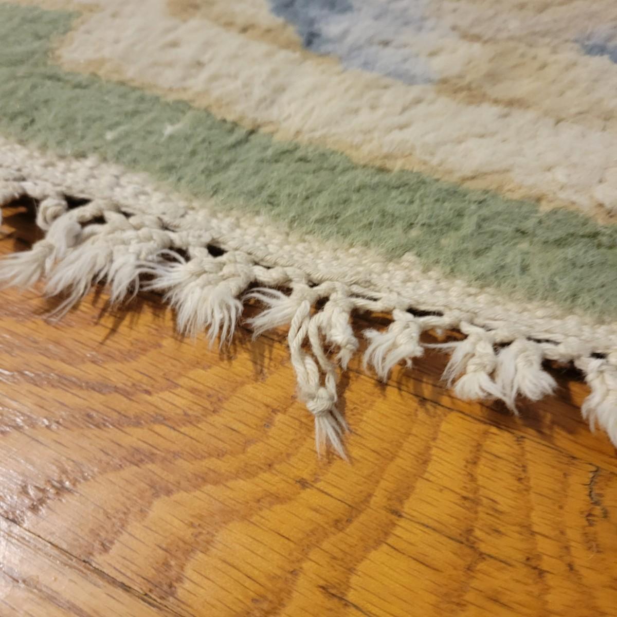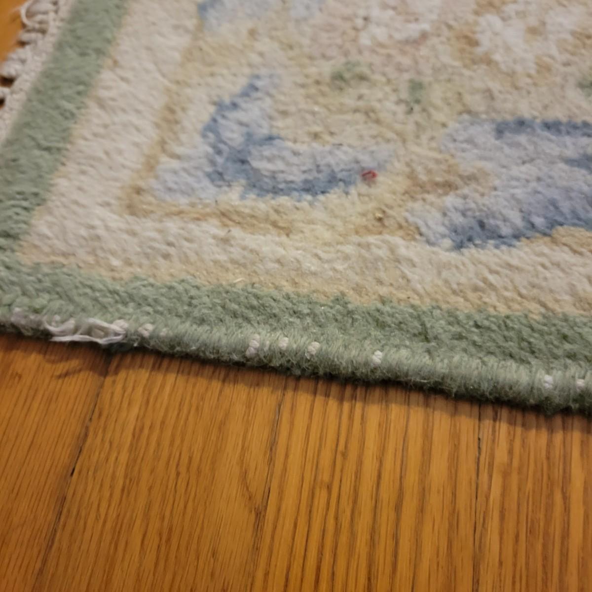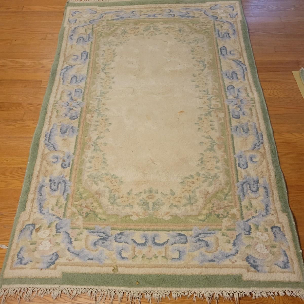 A pair of matching area rugs that both measure approximately 72" x 47". Both rugs are in fair condition. There is some wear on the edges and the end tassels are a bit frayed. No major stains or smells. Lot includes two no-slip mats. Local pickup only.