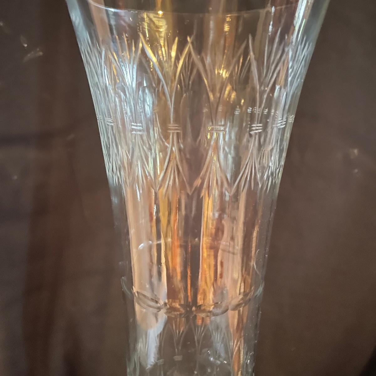 Measure 24” tall with a 5” diameter at the top of the glass.