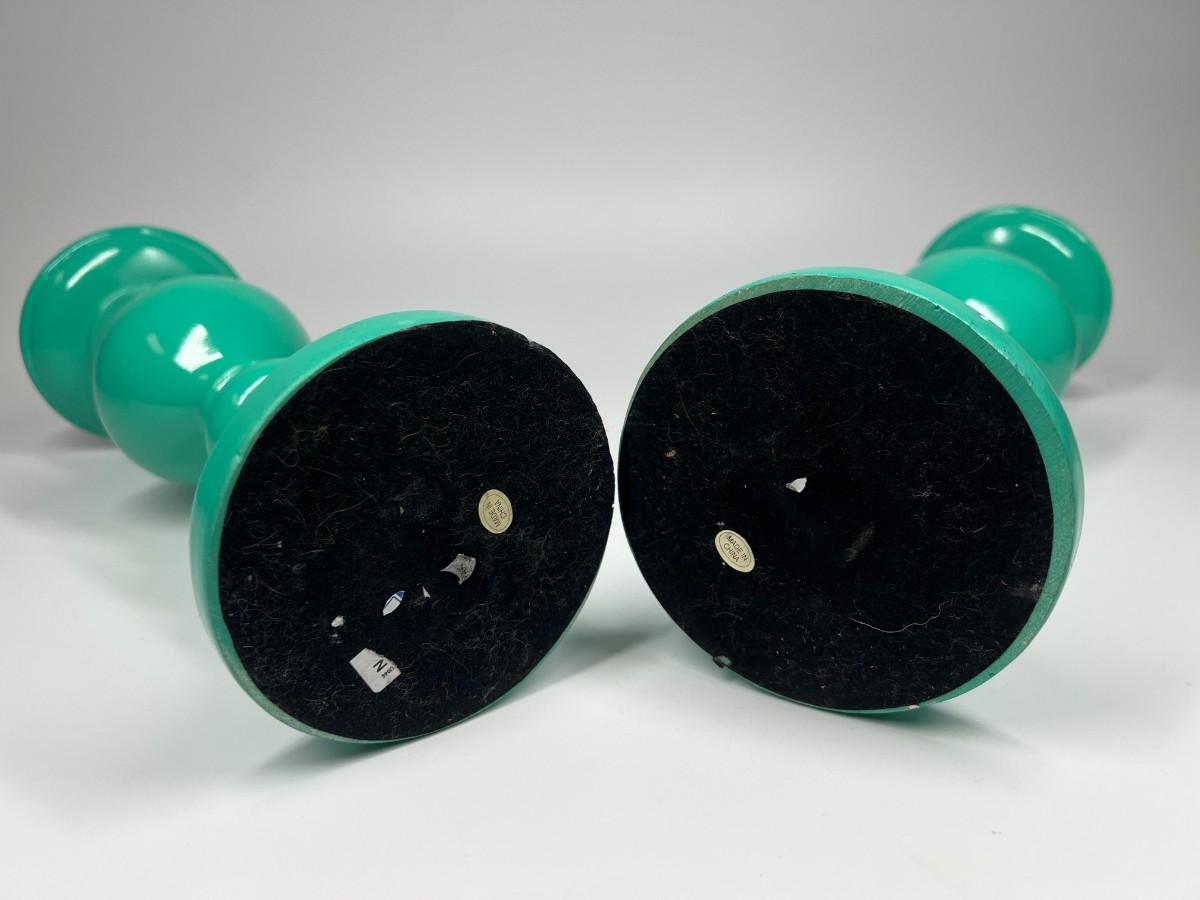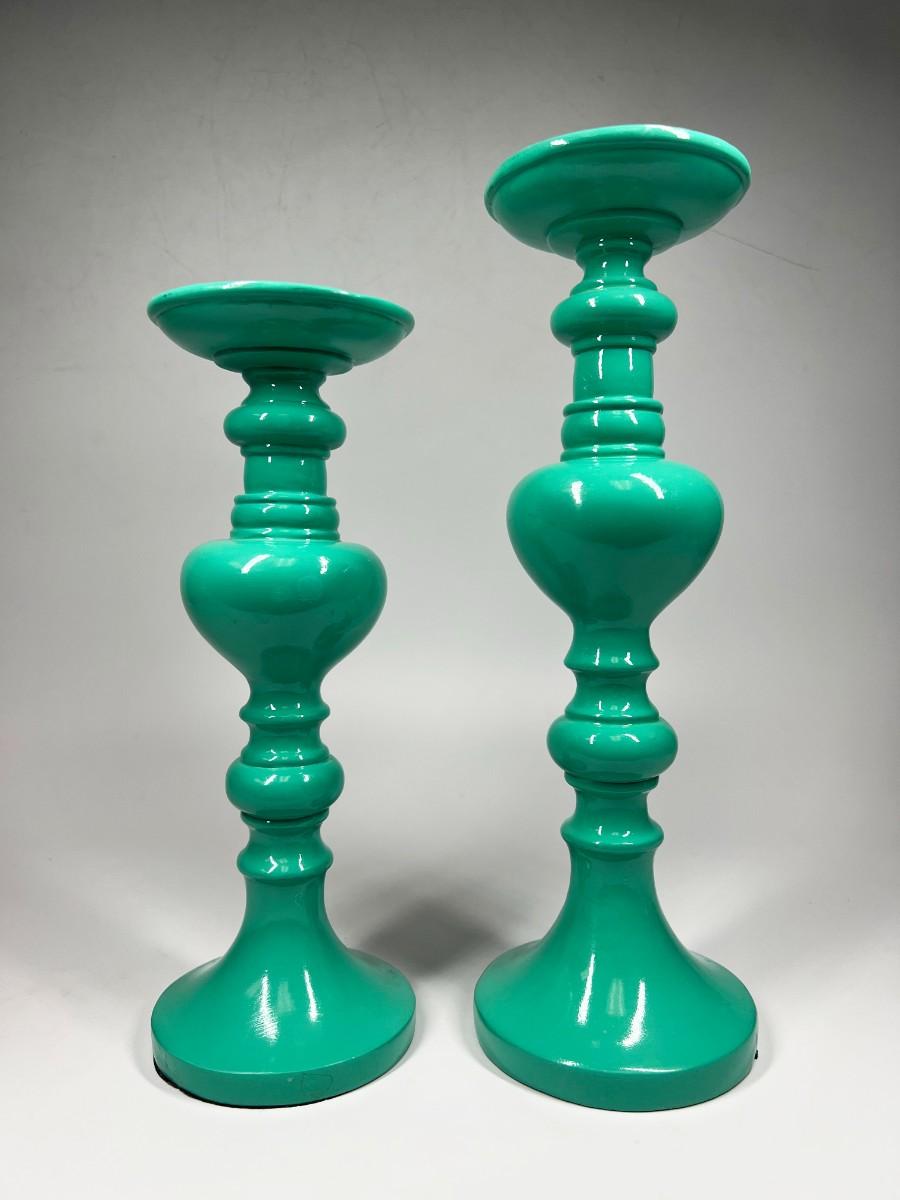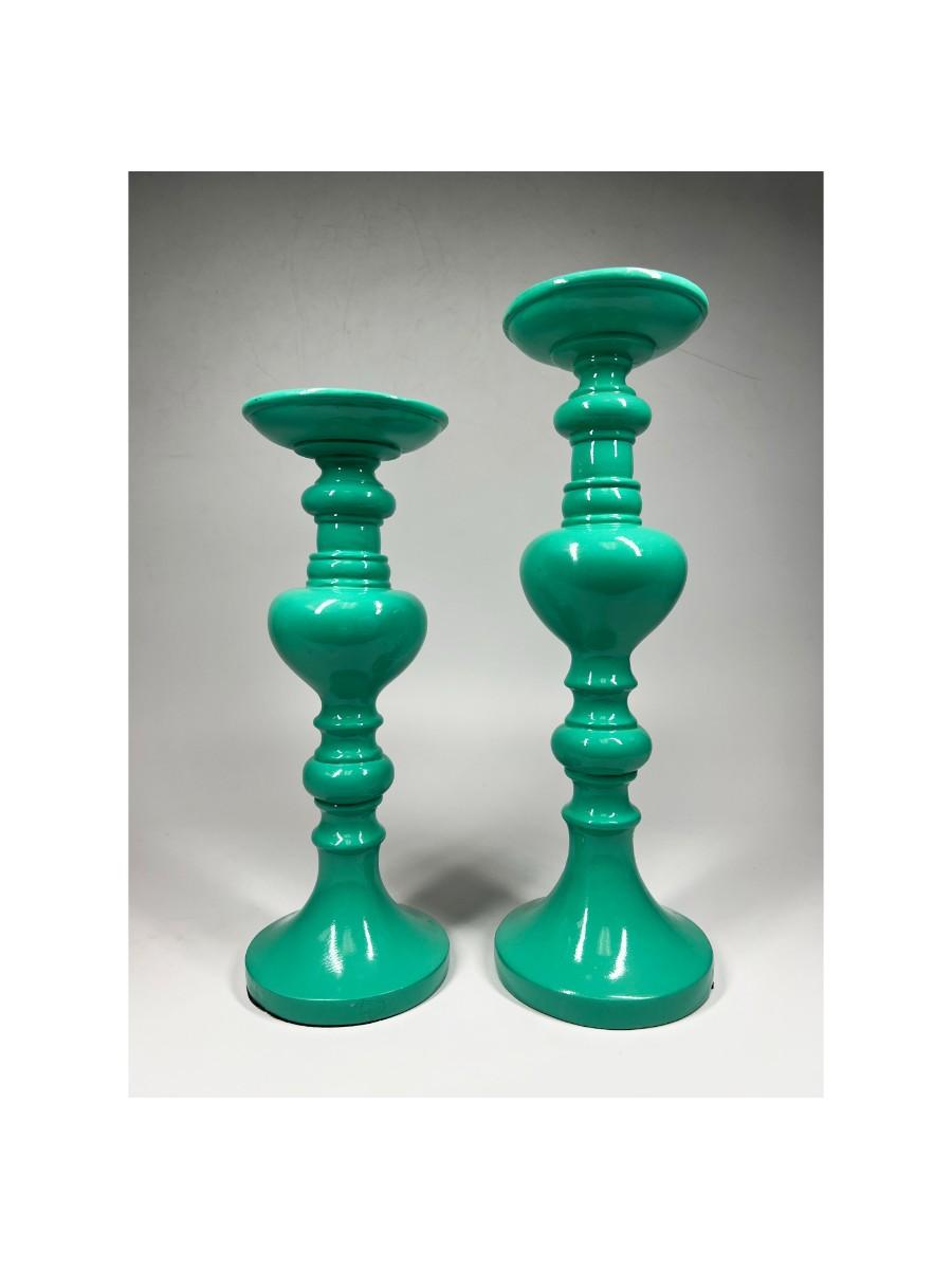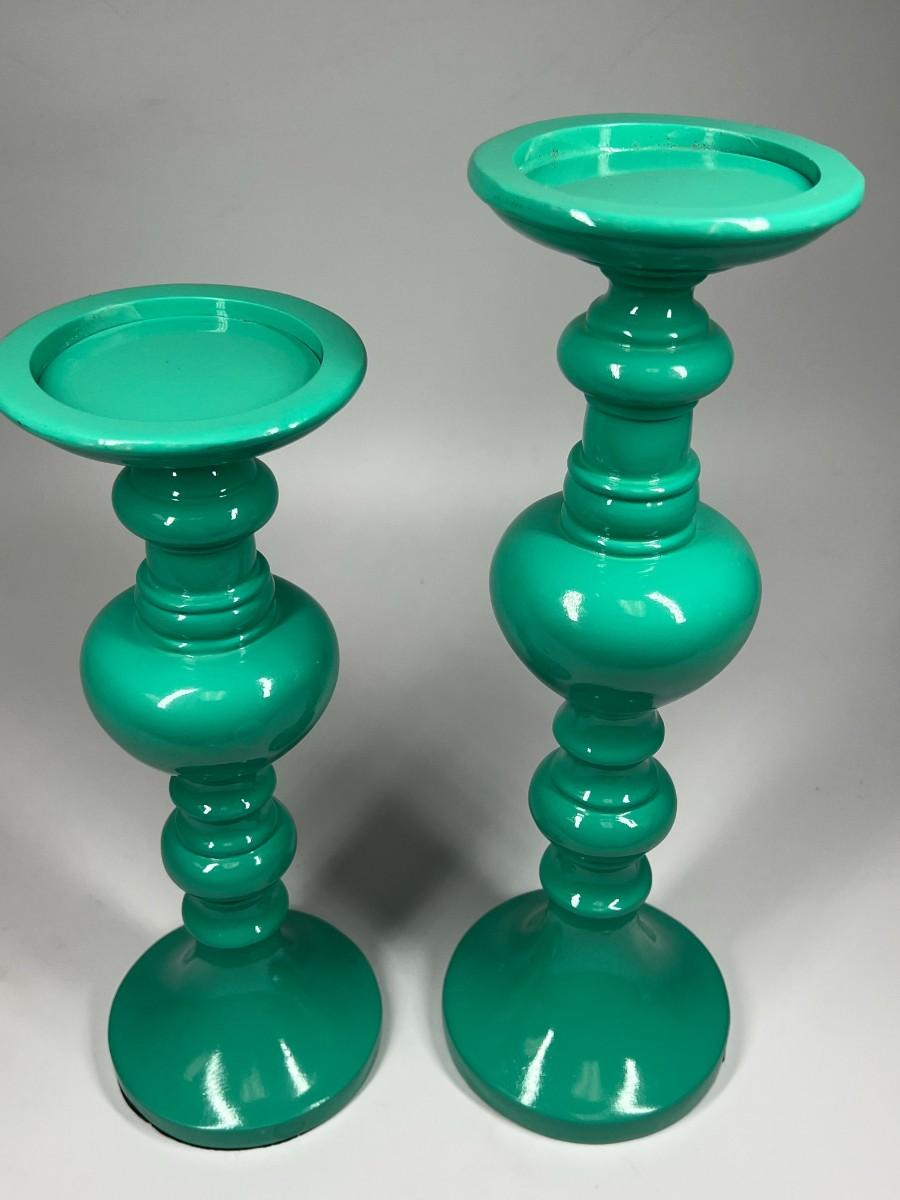 Matching Pair of Mint Green Candle Stick Holders Pillars