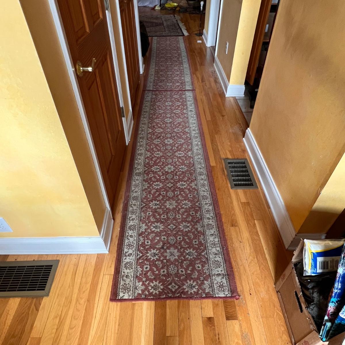 These two runner rugs are identical. They could do with a good clean, as they were in a high traffic area.