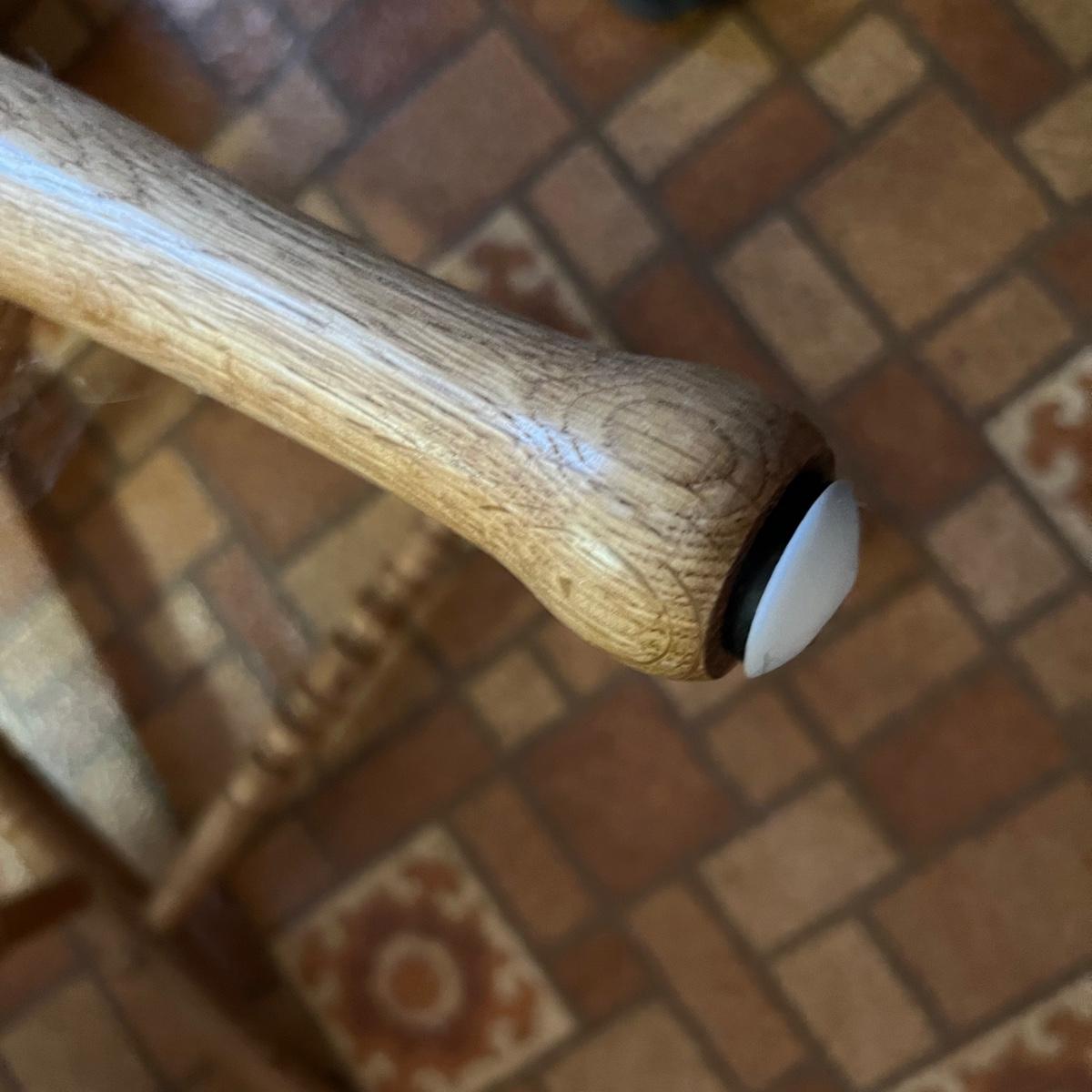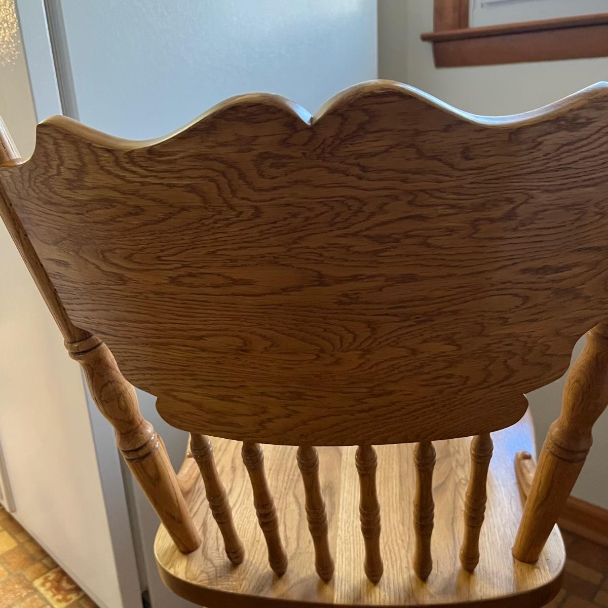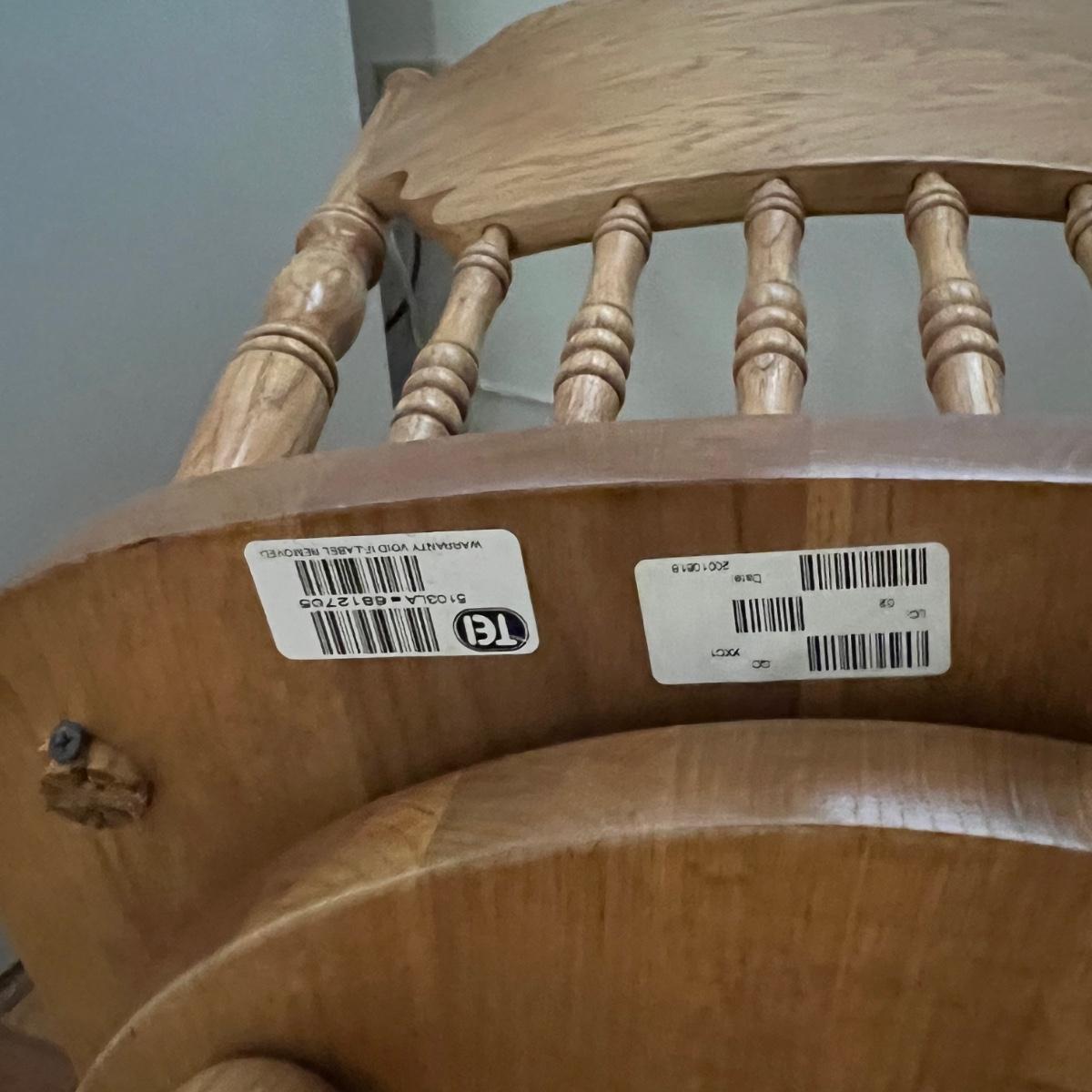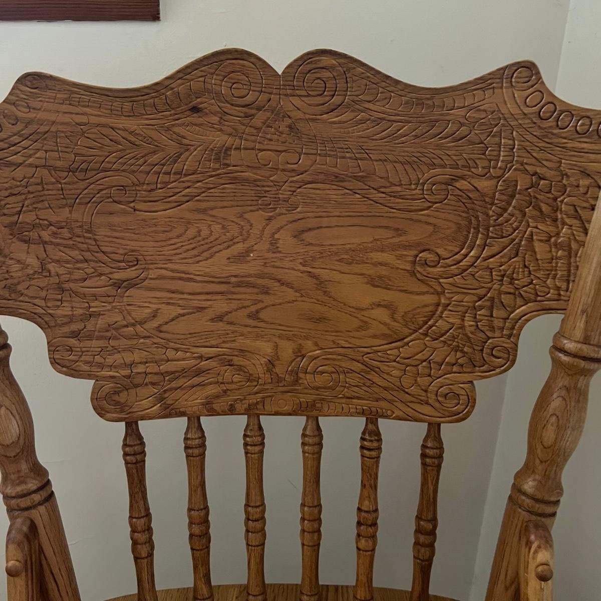These two stools are in very good condition. They are solid wood and appear to be oak with some carved details. Both chairs swivel smoothly.