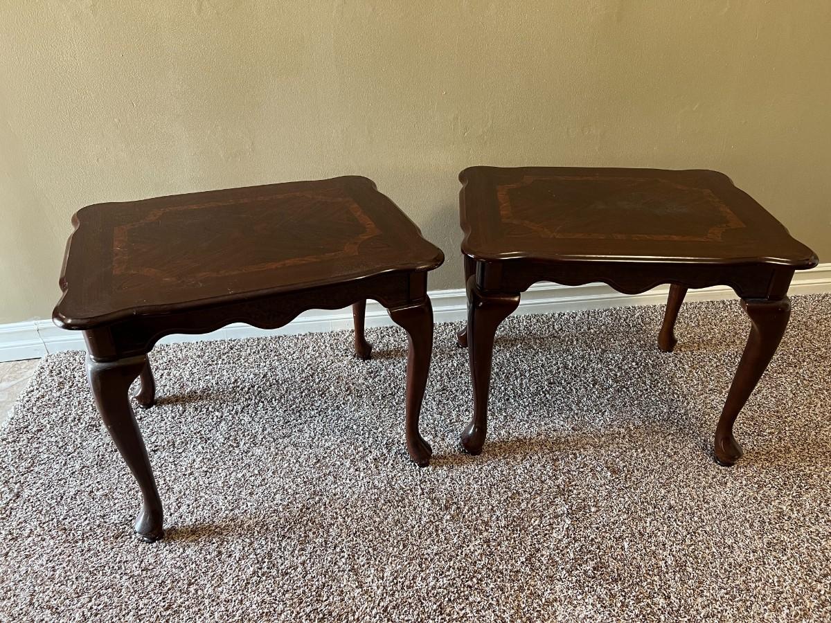 Matching Pair of Wood Claw Foot Side End Tables