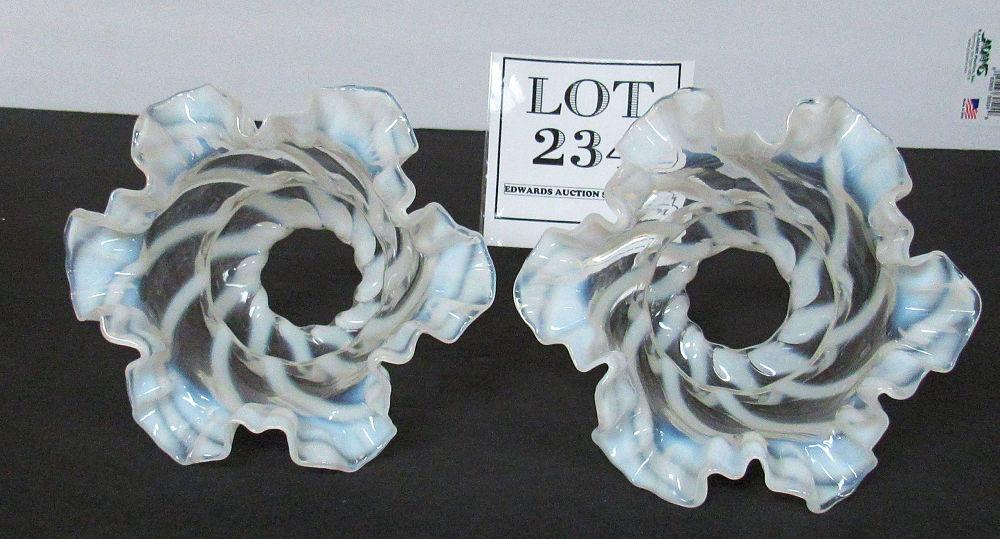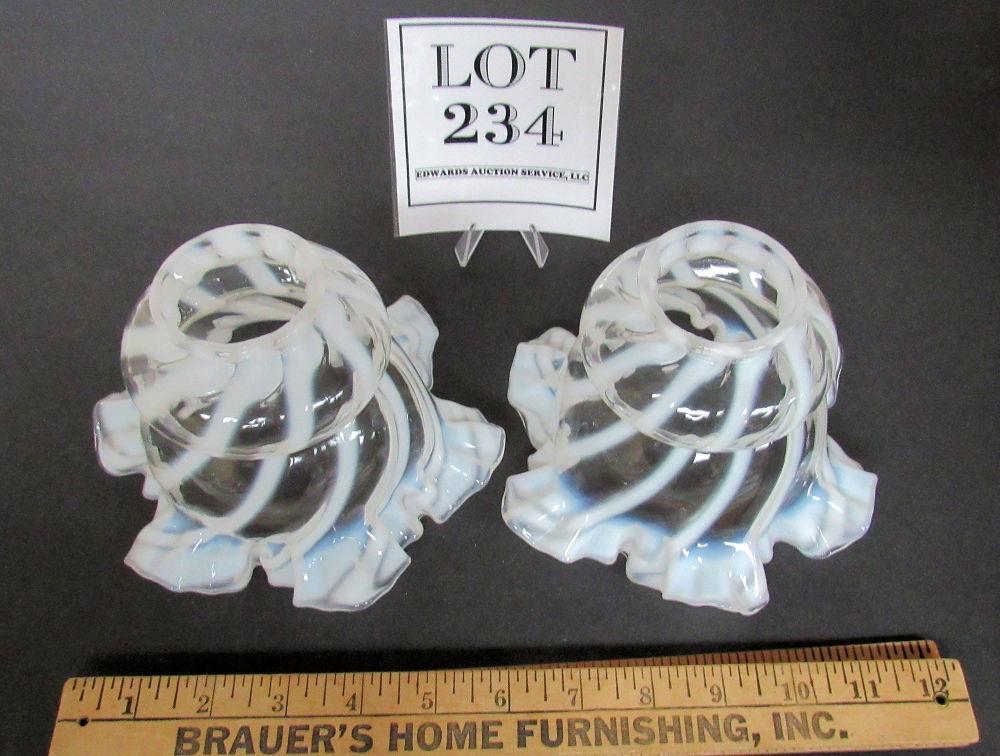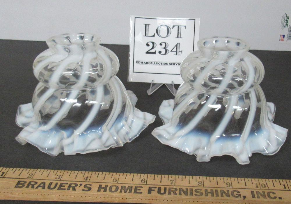 Matching Pair White Opalescent Ruffled Lamp Shades