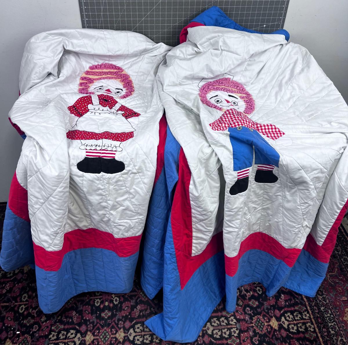 Matching Set of Twin QUILTS Raggedy Ann & Andy Hand Crafted.
